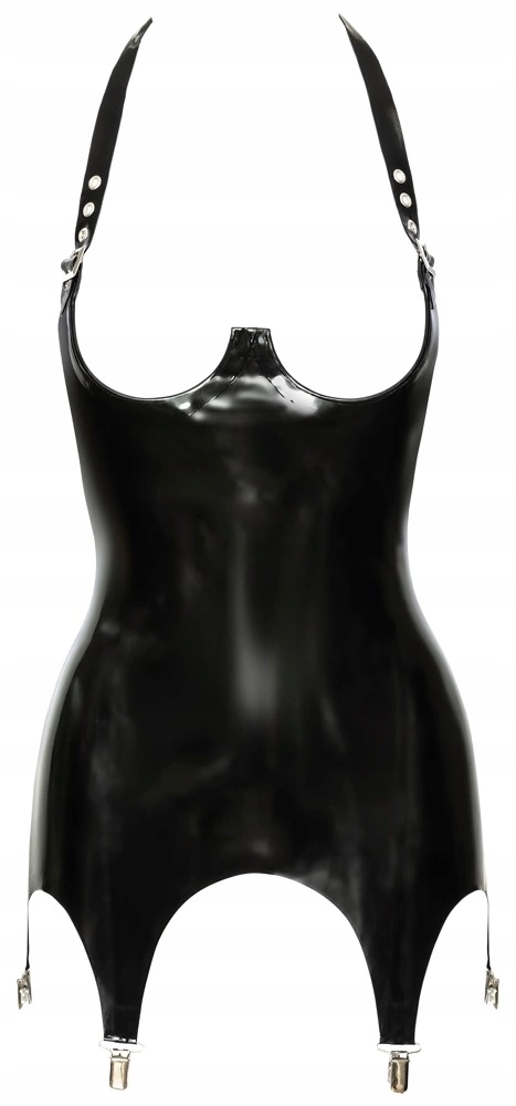 LATE X - Seksowna Czarna Lateksowa Koszulka Bez Biustu Na Szelkach 2XL