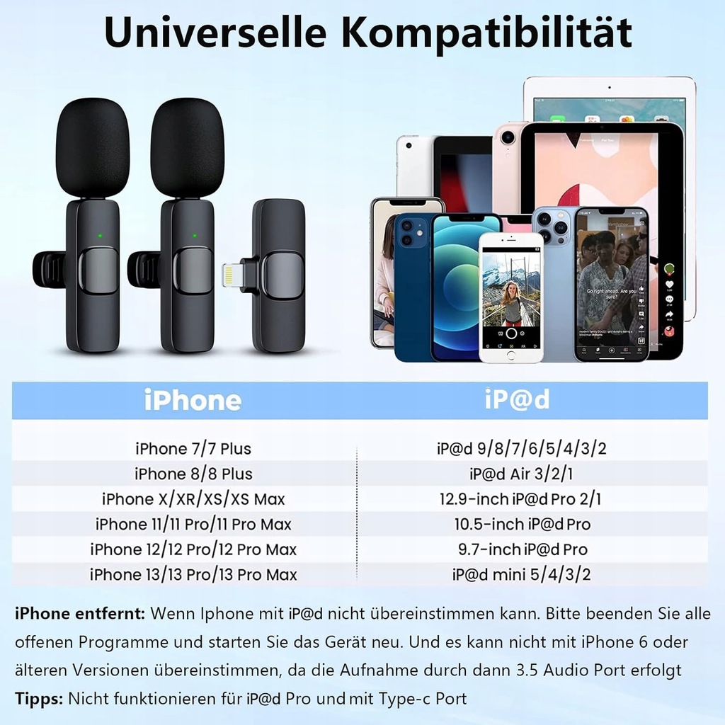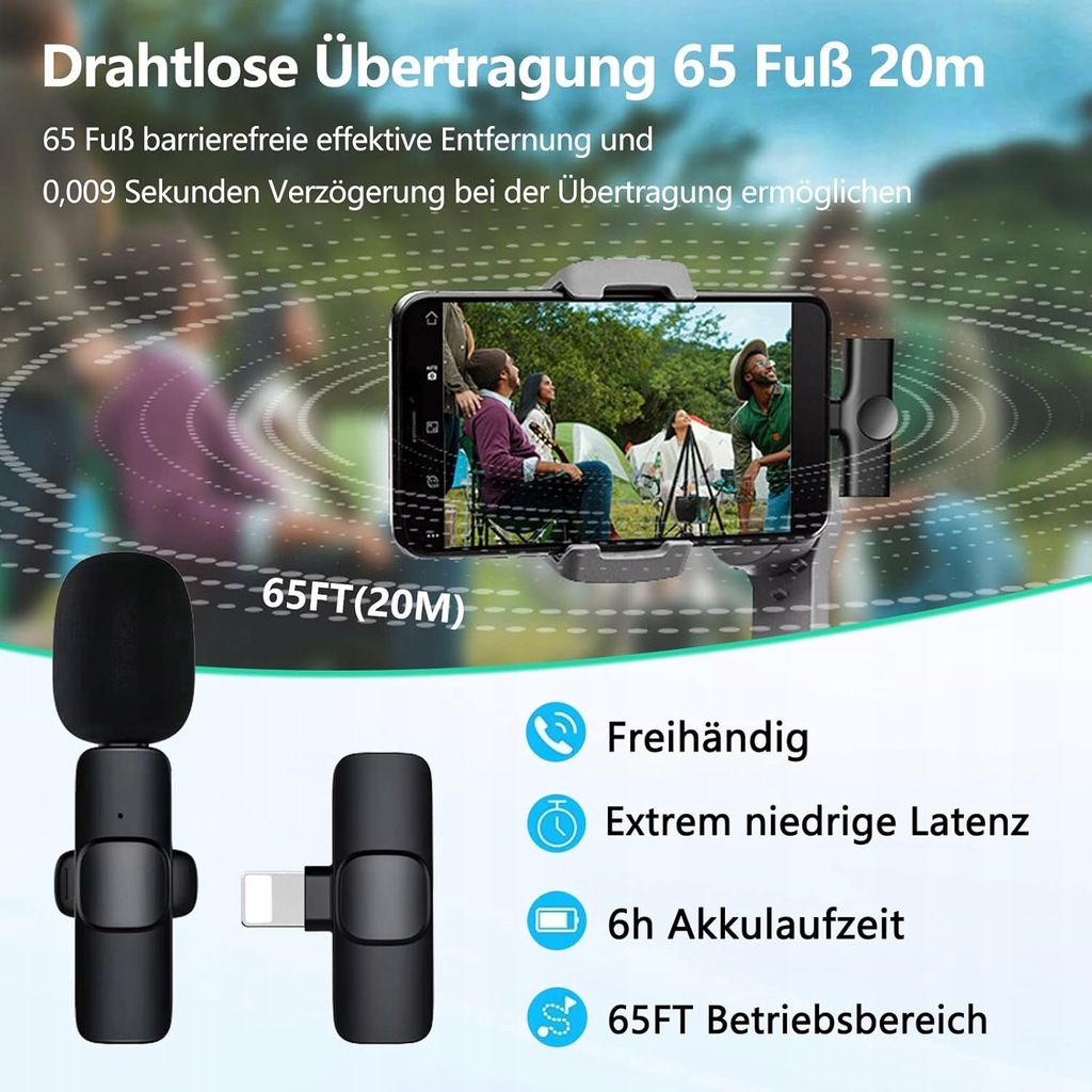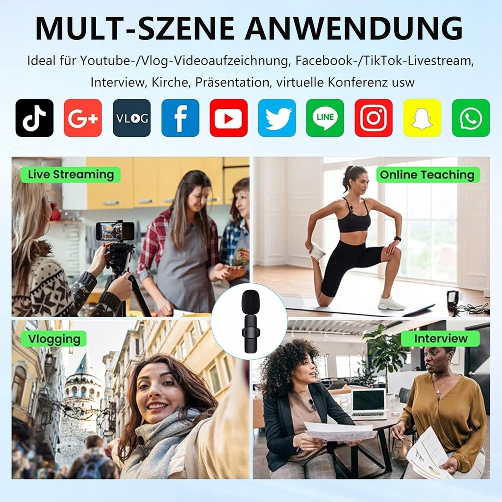 Za pomocą mini klipsa możesz podłączyć mikrofon lawendowy bezprzewodowo do kołnierza lub torebki. Innowacyjny mobilny mikrofon z 2 mini mikrofonami jest odpowiedni dla 2 osób, które mogą korzystać razem ze streamingiem na żywo Facebook YouTube, nagrywanie wideo, vlog, wywiady, transmisje, rozmowy telefoniczne, blogi. Może być również używany jako mikrofon bezprzewodowy