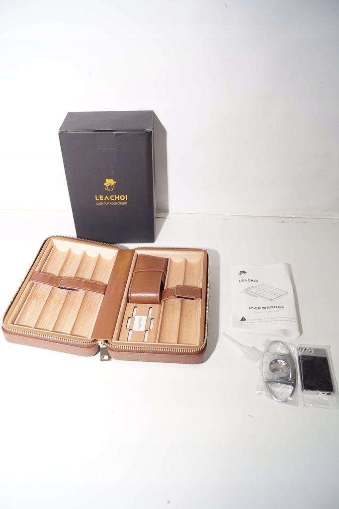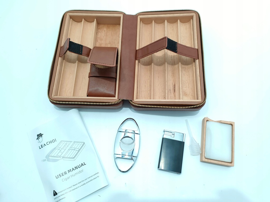 Elegancki i praktyczny pojemnik na cygara z skórzanej etui marki LEACHOI to idealne rozwiązanie dla miłośników cygar. Wykonany z hiszpańskiego drewna cedrowego i wysokiej jakości skóry PU, utrzymuje świeżość cygar dzięki dobrej przepuszczalności wilgoci i powietrza. Zamykany na metalowy zamek błyskawiczny, zapewnia bezpieczne przechowywanie cygar w podróży.