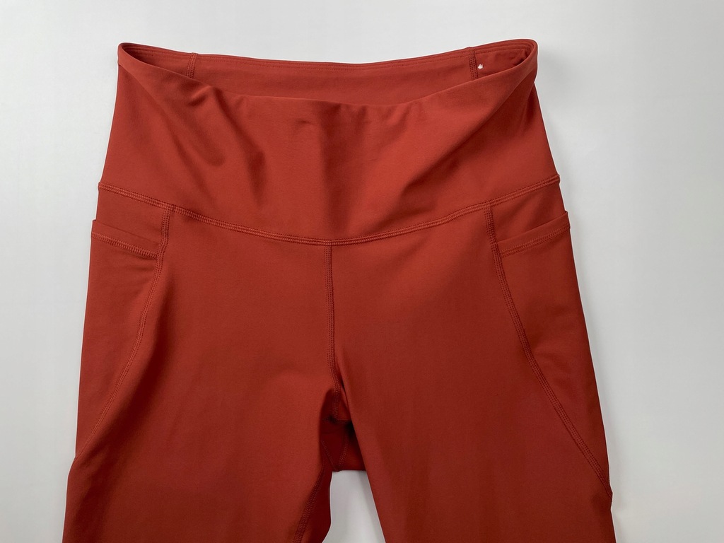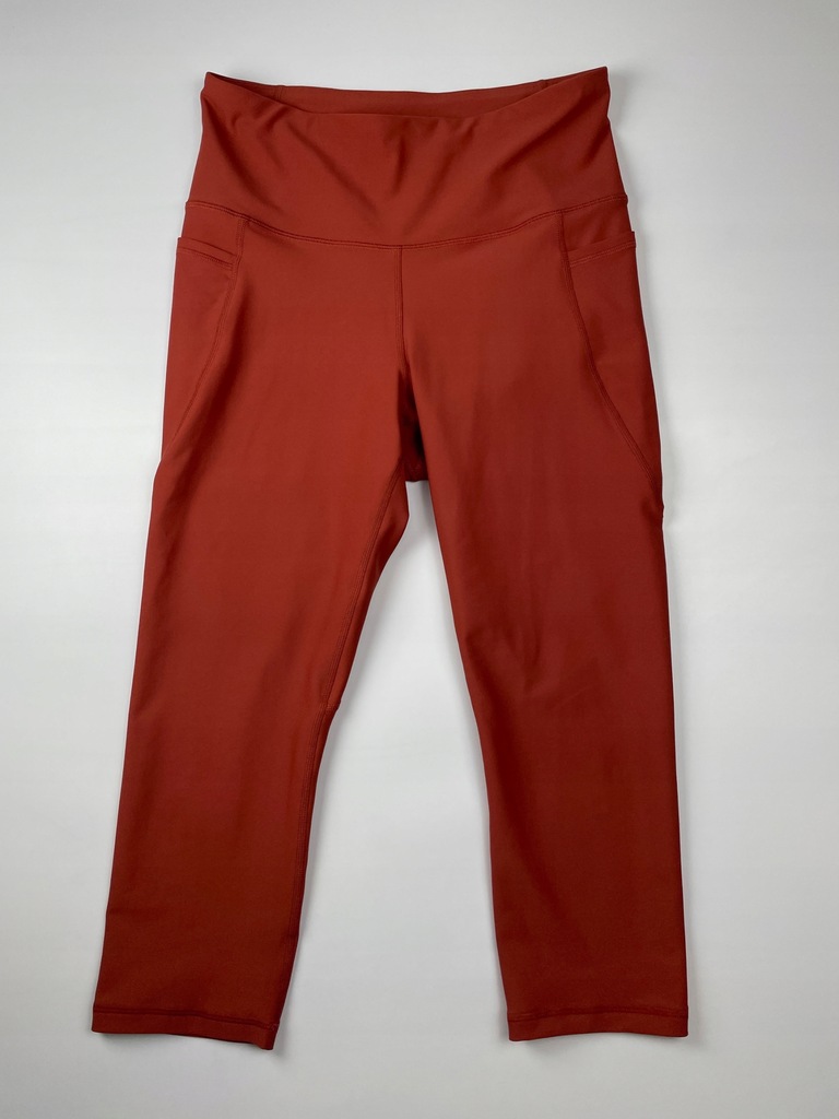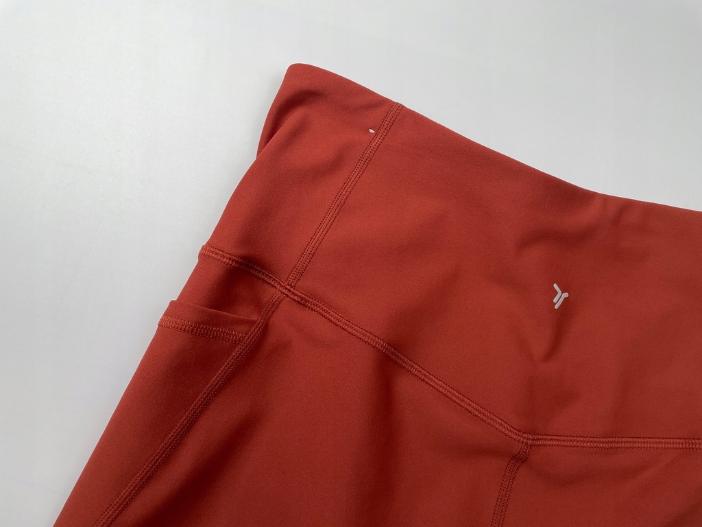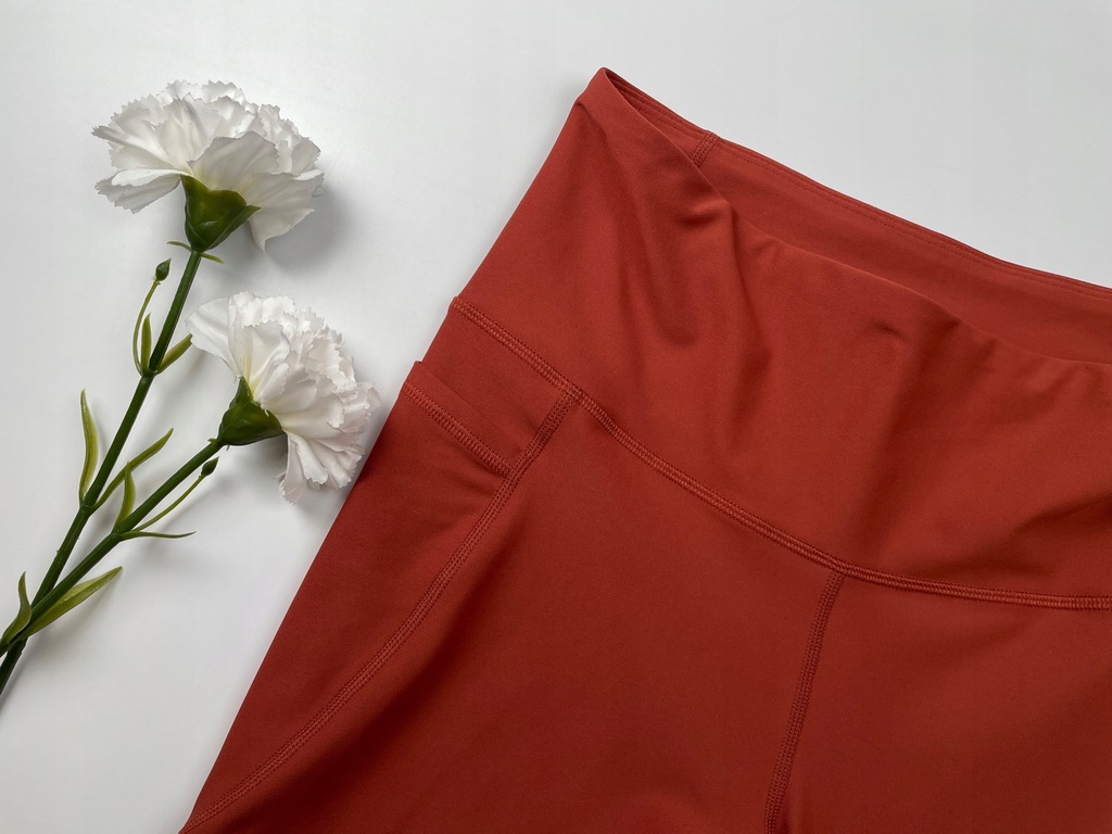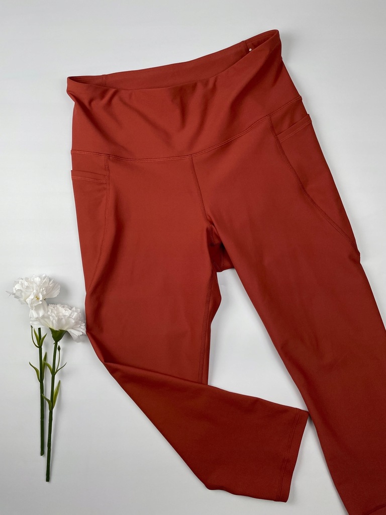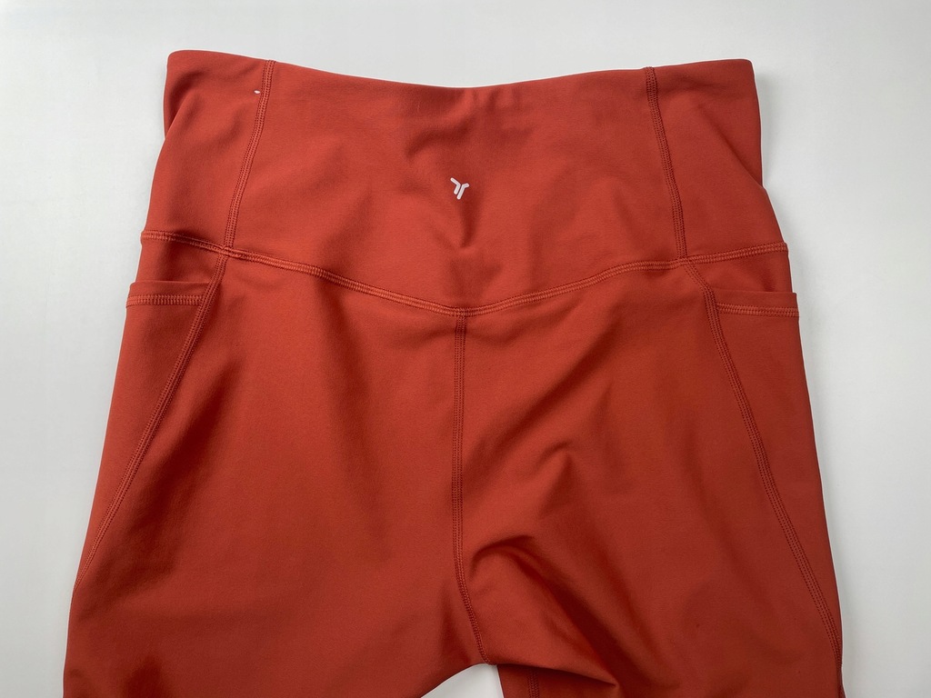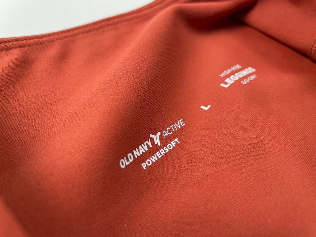- Leginsy damskie marki OLD NAVY. Pochodzą z kolekcji Active, powersoft. Są w pięknym ceglanym kolorze. Mają wysoki stan, nogawki długości 3/4. Posiadają przeszycia wykonane z płaskich szwów- co zapewni wygodę w noszeniu oraz pięknie podkreśli sylwetkę. Po bokach znajdują się kieszonki. Leginsy wykonane z elastycznego materiału- idealnie dopasowują się do sylwetki. Leginsy wykorzystują technologię GO-DRY.
