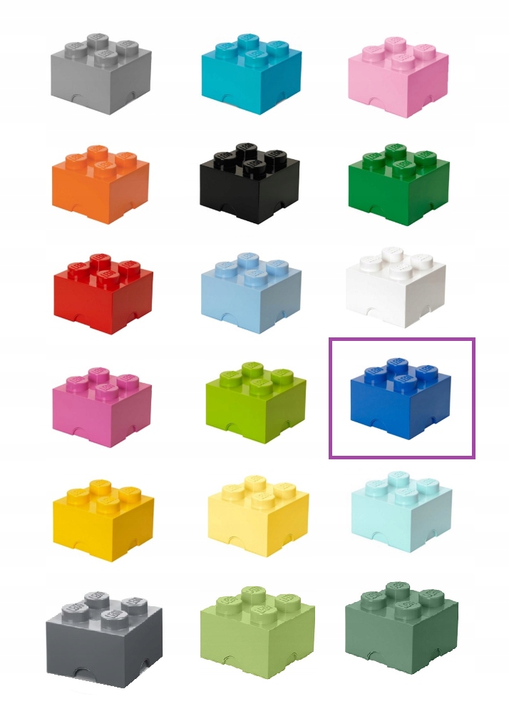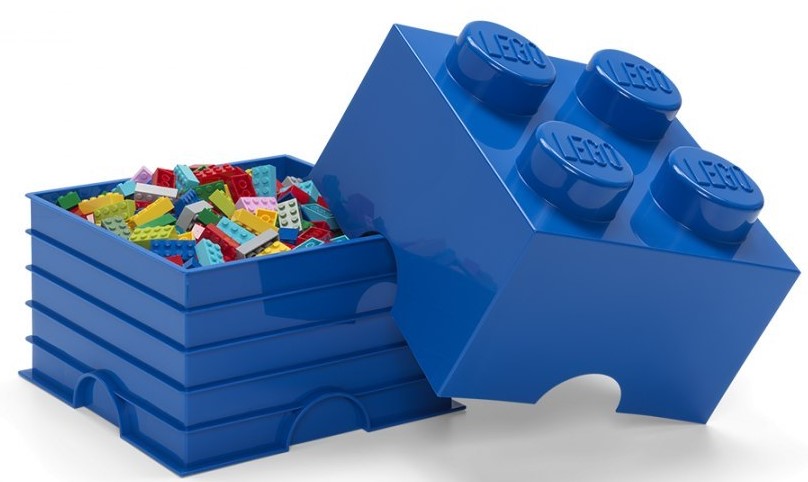 Niebieski pojemnik z 4 wypustkami stanowi doskonały wstęp do zabawy w…porządki. Do pojemnika można chować kredki, flamastry, przybory szkolne, mniejsze zabawki oraz klocki LEGO®. Można udekorować nim pokój i skorzystać z niego podczas konstruowania niesamowitych budowli. Ten duży klocek można łączyć z innymi, tworząc całe segmenty, które pomogą w utrzymaniu idealnego porządku i stworzeniu atmosfery niekończącej się zabawy. Z kolei mamy najmniejszych miłośników LEGO® mogą wykorzystać pojemnik do przechowywania pieluch, kosmetyków i akcesoriów do pielęgnacji niemowląt.