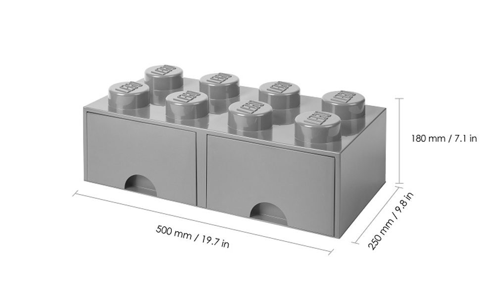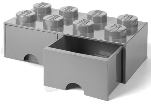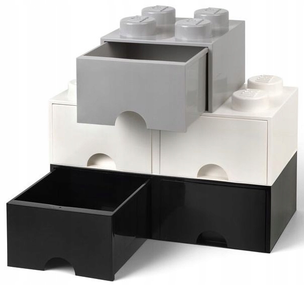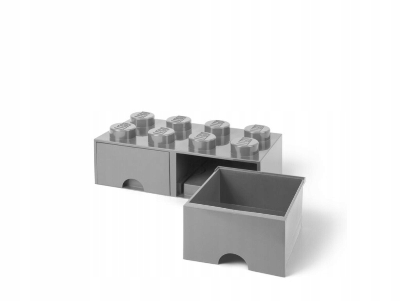 Szara szuflada w kształcie klasycznego klocka LEGO® sprawia, że sprzątanie może być niezłą zabawą. Do szuflady można schować artykuły szkolne, małe i średnie zabawki, w tym klocki LEGO®, czy ulubione książeczki. Szuflada pomieści również pieluchy, kocyki, śliniaki czy kosmetyki dla niemowląt. Szufladę można ustawiać na innych pojemnikach LEGO® lub zostawić ją na dole wieży z klocków. Wówczas stanowi podstawę dobrej zabawy i skrzynię, która kryje w sobie niezliczone skarby.