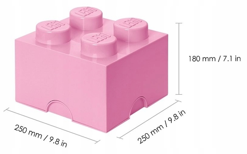 Duży kwadratowy pojemnik w kształcie klasycznego klocka LEGO® w radosny sposób pomaga uporządkować dziecięcy pokój.