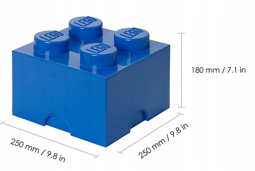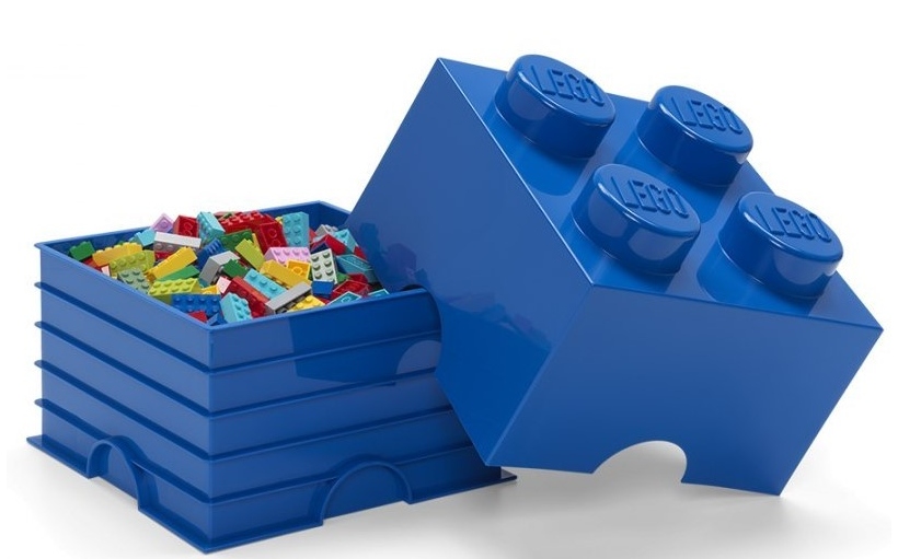 Duży kwadratowy pojemnik w kształcie klasycznego klocka LEGO® w radosny sposób pomaga uporządkować dziecięcy pokój.