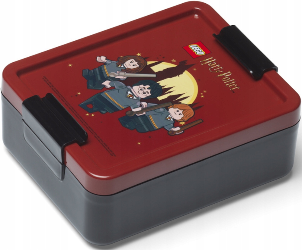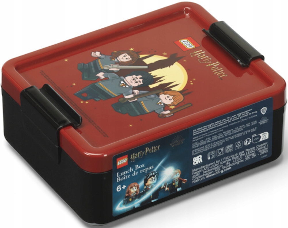 Poznaj świat czarodziejów z tym pudełkiem na przekąski LEGO Harry Potter. Pudełko ma magiczny i zabawny wygląd z grafiką LEGO Harry Potter na wieczku. Dzięki klipsom dzieci mogą łatwo otworzyć pokrywkę i używać jej jako talerza. Wewnątrz znajduje się ruchoma przegroda do oddzielania warzyw, owoców, kanapek itp. Kompletny zestaw obiadowy można połączyć z butelką do picia LEGO Harry Potter (brak w zestawie).