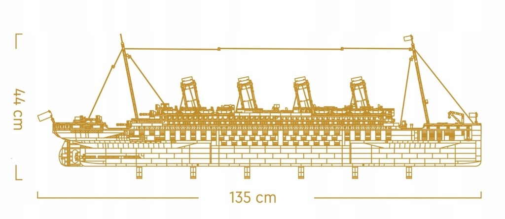 - Gigantyczny model Titanica to wspaniały historyczny eksponat, który ma w komplecie podstawkę do każdej z trzech sekcji. Idealnym akcentem wykończeniowym będzie plakietka z nazwą, którą można zamocować na dziobie.