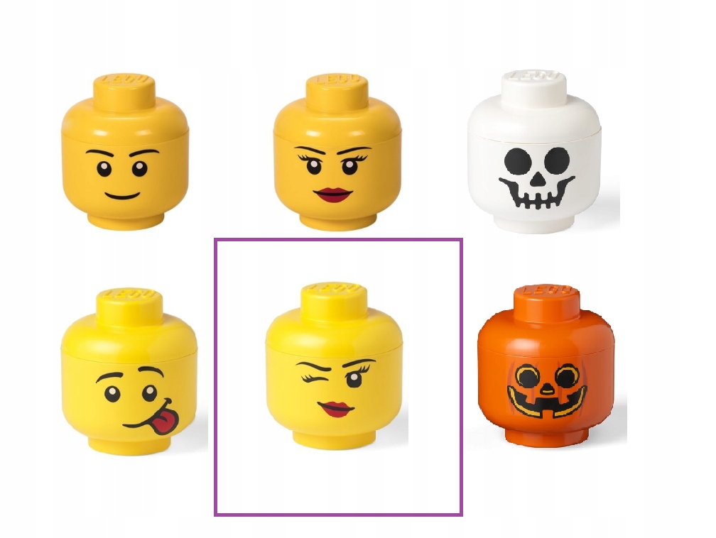 Głowy LEGO można swobodnie ze sobą łączyć, dostępne są w trzech rozmiarach i sześciu rodzajach.