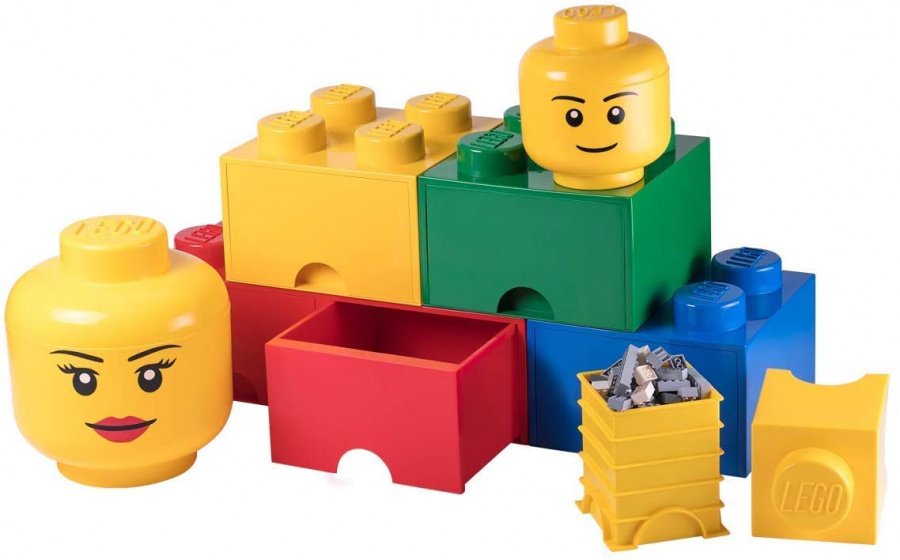 - Pojemnik ma kształt głowy klasycznej minifigurki LEGO
