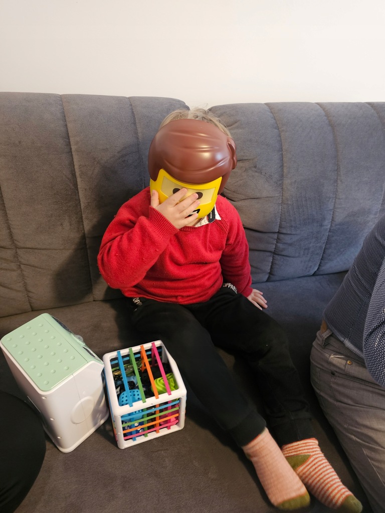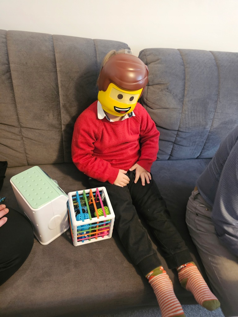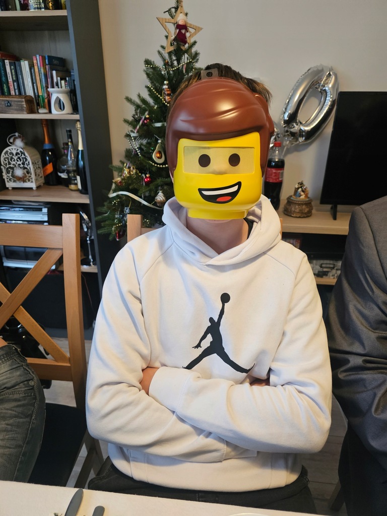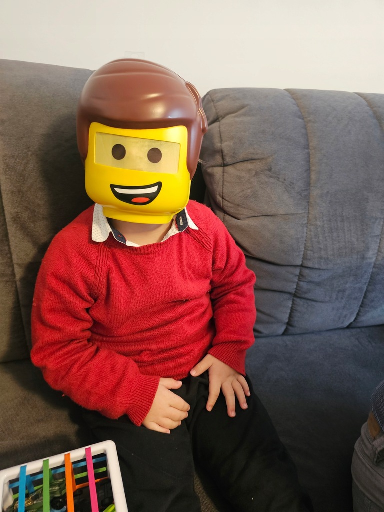 - Formowana plastikowa maska Emmet z bezpiecznym zapięciem na zatrzask do zabawy w odgrywanie ról LEGO® PRZYGODA 2™.