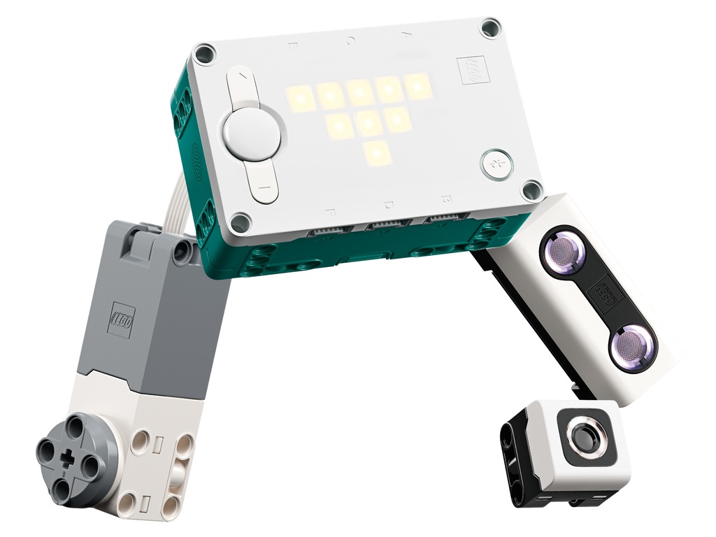 • Zestaw zawiera prawie 1000 elementów, w tym inteligentny element Hub, 4 średnie silniki oraz czujniki koloru i odległości, a do tego podzielony na sekcje interfejs, więc oprócz podstawowych modeli dzieci będą mogły budować własne robotyczne zabawki i chwalić się nimi online w LEGO Life.