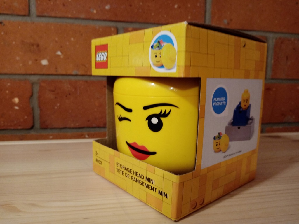 - Fajny pojemnik – większa wersja głowy minifigurki LEGO z podnoszoną pokrywką.