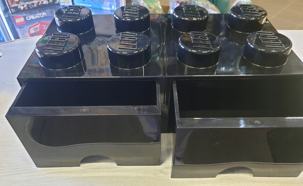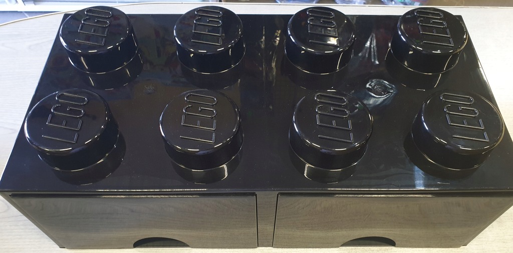 - Pojemnik z dwoma wygodnymi szufladami ma kształt klasycznego klocka LEGO®