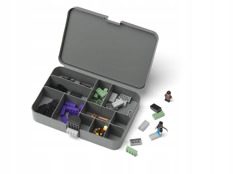 Sorter doskonale sprawdza się zarówno w domu, jak i w podróży. Używając sortera LEGO® możesz zabrać ze sobą swoje ulubione zestawy w podróż, na wycieczkę albo do kolegi lub koleżanki. Dzięki małym przegródkom w środku, nie trzeba długo szukać poszczególnych części. Stop zagubionym klockom! Twoje zestawy będą teraz starannie posortowane, a składanie ich na nowo będzie czystą przyjemnością. Sorter można ustawić jeden na drugim, a dzięki klipsowi z małą płytką na przodzie, można dołączyć do niego ulubioną minifigurkę lub mały zestaw LEGO®.