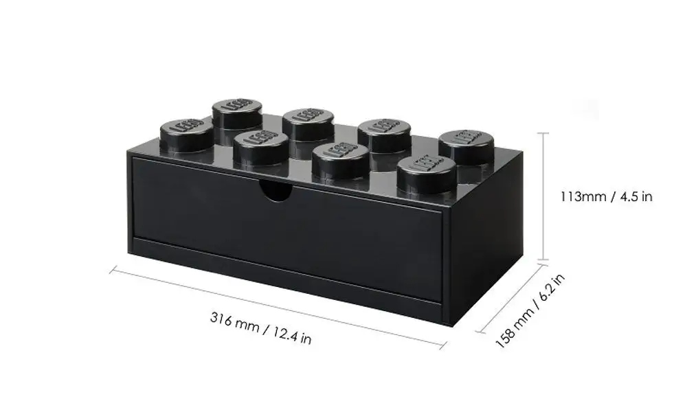 Szybkie sprzątanie na stole? Zabawka dzięki pudełkom na stół LEGO®. Odpowiednie do aranżacji biura, a także pokoi dziecięcych i łazienek. Idealne na mniejsze zabawki, klocki LEGO, papier, artykuły piśmiennicze i przybory toaletowe. Pudełka można ustawiać jedno na drugim, a wysuwane szuflady zapewniają łatwy dostęp do przechowywanych przedmiotów.