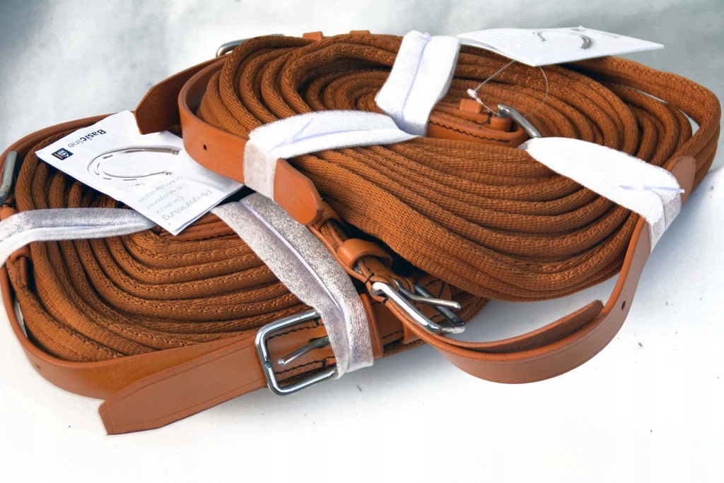 Lejce singlowe na jednego konia koni Roz. full Lejce wykona w całości z taśmy parcianej ,bardzo miękkiej i miłej w dotyku, . Okucia wykonane ze stali nie rdzewnej .Długość całkowita lejcy 9 metrów.Polecam