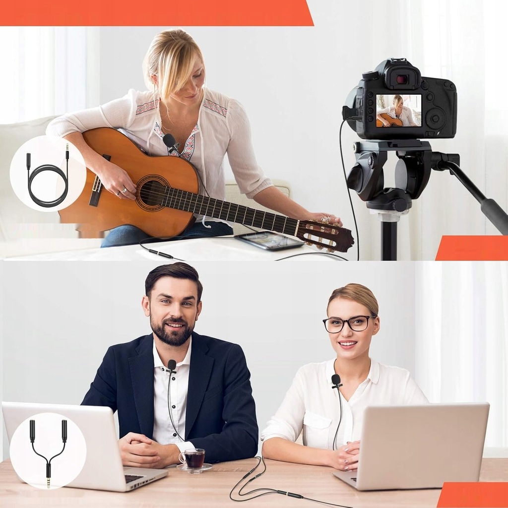 - Łatwa obsługa: Mikrofony są kompatybilne z wieloma urządzeniami takimi jak Android, iPhone, kamery czy komputery, wymagając jedynie połączenia przez złącze 3,5 mm. Nie potrzebują zasilania bateryjnego ani dodatkowych sterowników.