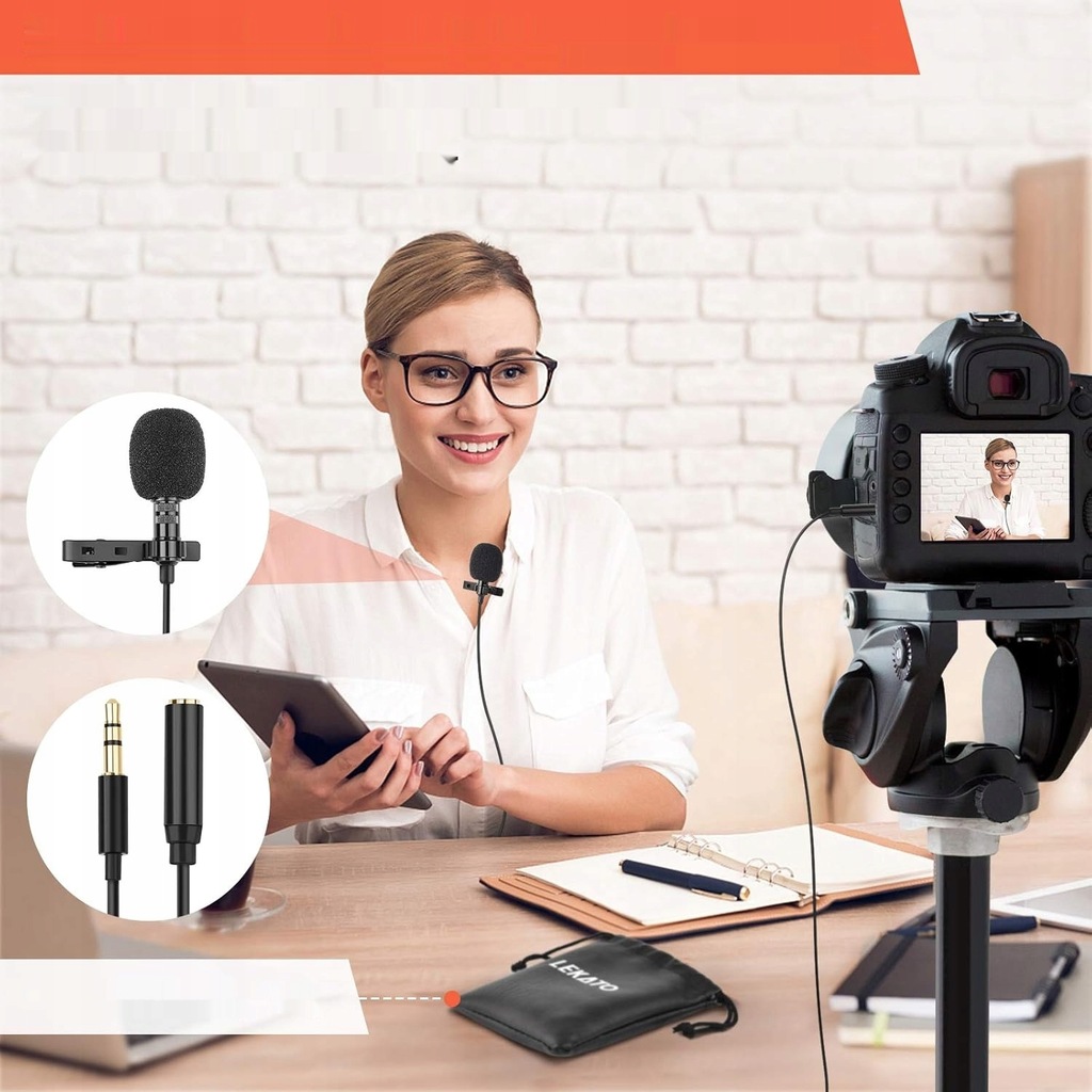 LEKATO Mikrofon krawatowy, mikrofon zgodny z Android/iPhone/Kamera/PC