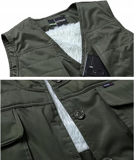 - Materiał: 100% poliester, miękki i odporny na zimno. Niezbędna kamizelka zimowa do użytku zewnętrznego, idealna, gdy potrzebujesz ciepła, ale niekoniecznie dużej objętości.