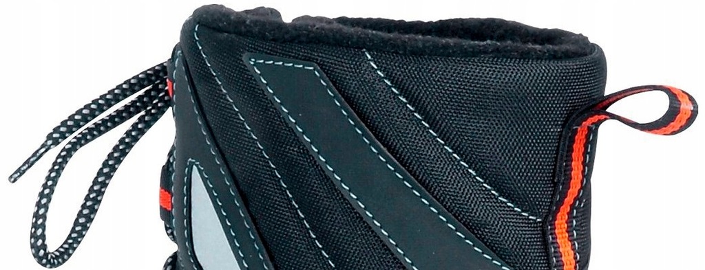 W tylnej części buta oraz po bokach znajdują się delikatne akcenty odblaskowe. Bez elementów stalowych.