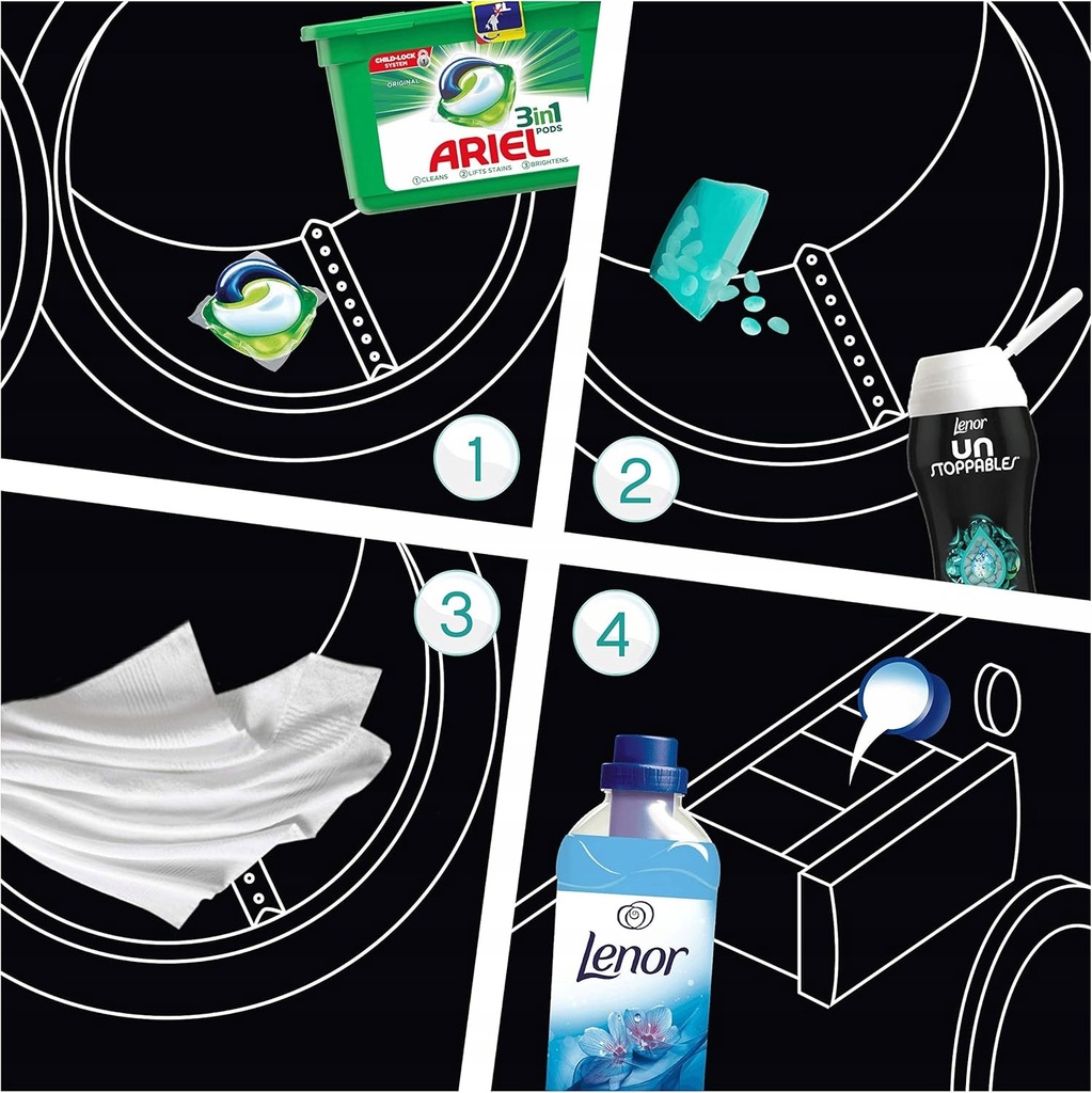 Chcesz zanurzyć się w przyjemnym zapachu cytrusów, wzbogaconym intensywnym kwiatowym aromatem? Wypróbuj Lenor UNSTOPPABLES FRESH Perełki zapachowe do prania! Ich sposób użycia jest banalnie prosty! Wsyp perełki zapachowe Lenor UNSTOPPABLES FRESH bezpośrednio do pustego bębna przed praniem. Następnie włóż ubrania do pralki, dodaj środek do prania i płyn do płukania tkanin. Postępuj zgodnie ze zwykłym sposobem prania. Wzmacniacz zapachu Lenor UNSTOPPABLES FRESH zapewniają maksymalną świeżość aż do 12 tygodni, podczas przechowywania w szafie.