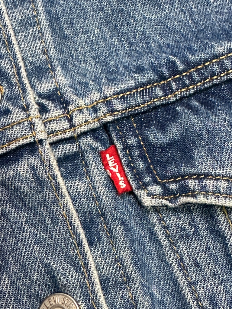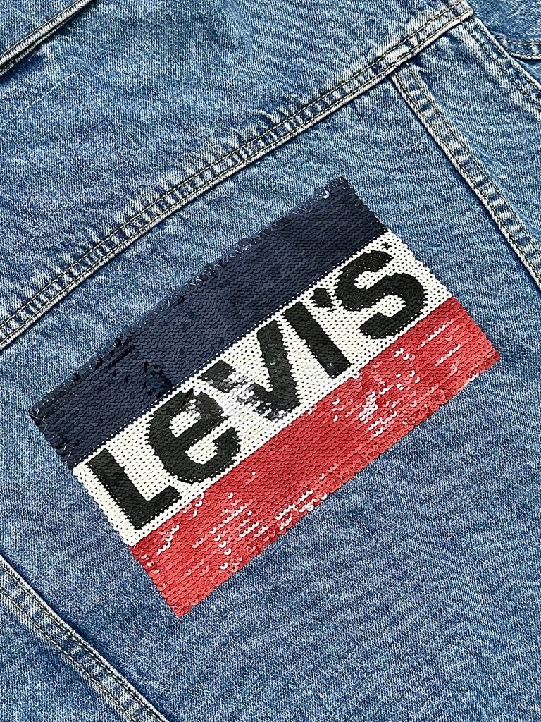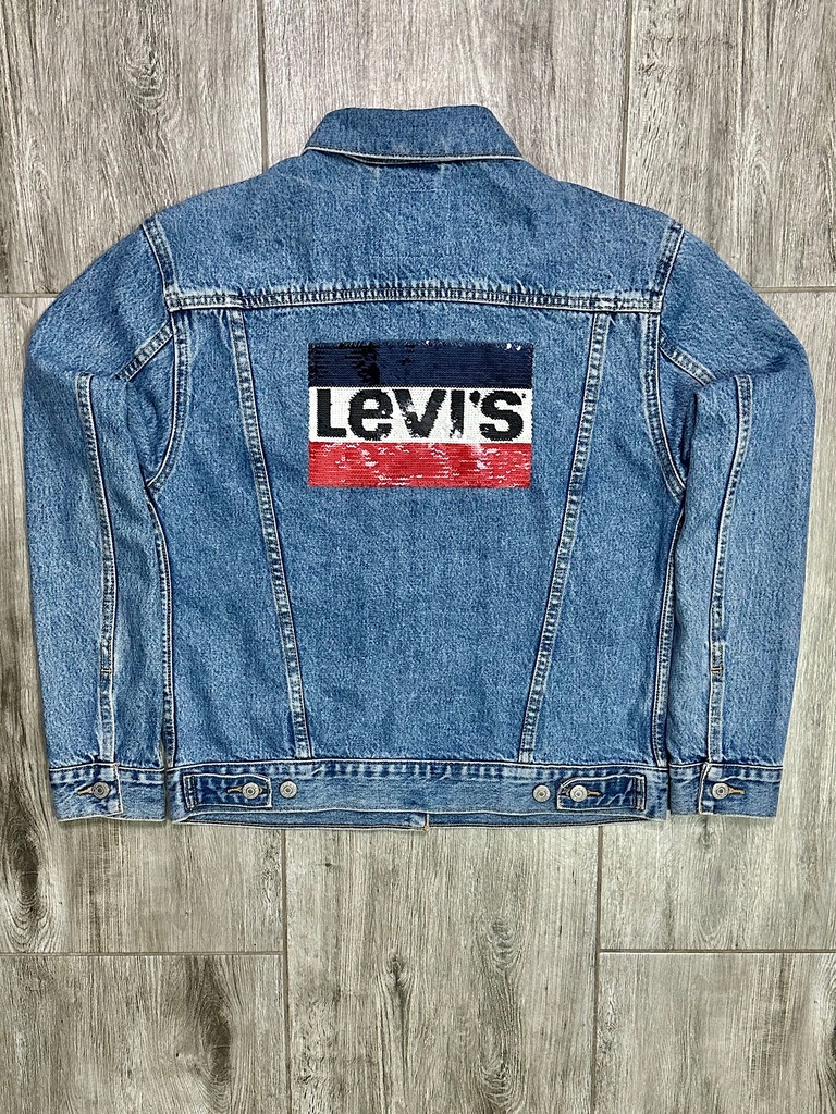 Sprzedam damską kurtkę katanę jeansową logowaną na plecach cekinami marki Levi’s