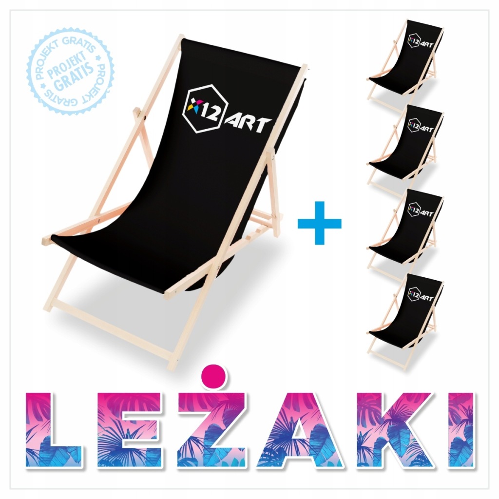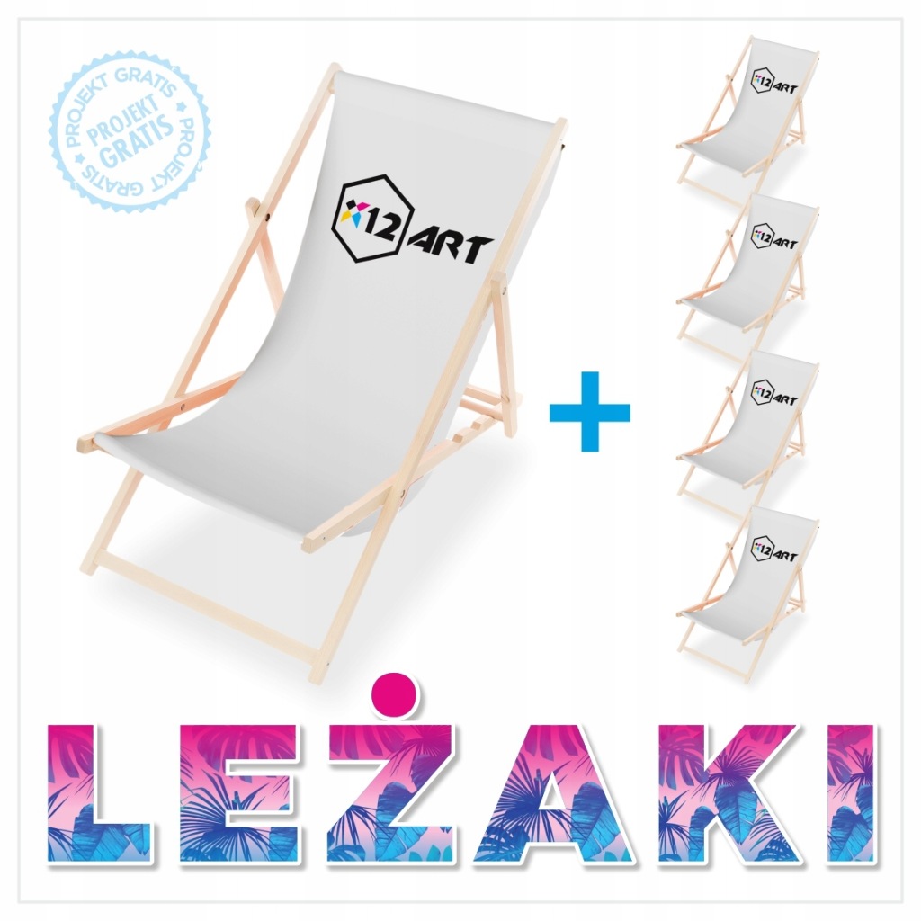 LEŻAK DREWNIANY PLAŻOWY OGRODOWY z personalizowanym nadrukiem indywidualnym z LOGO z projektem 1 szt.