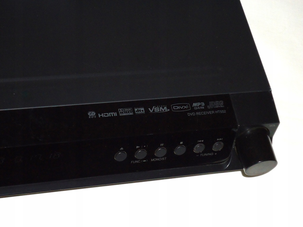 HT552TH może odtwarzać wielokanałowe ścieżki dźwiękowe z płyt DVD zapisane w DD i DTS.
