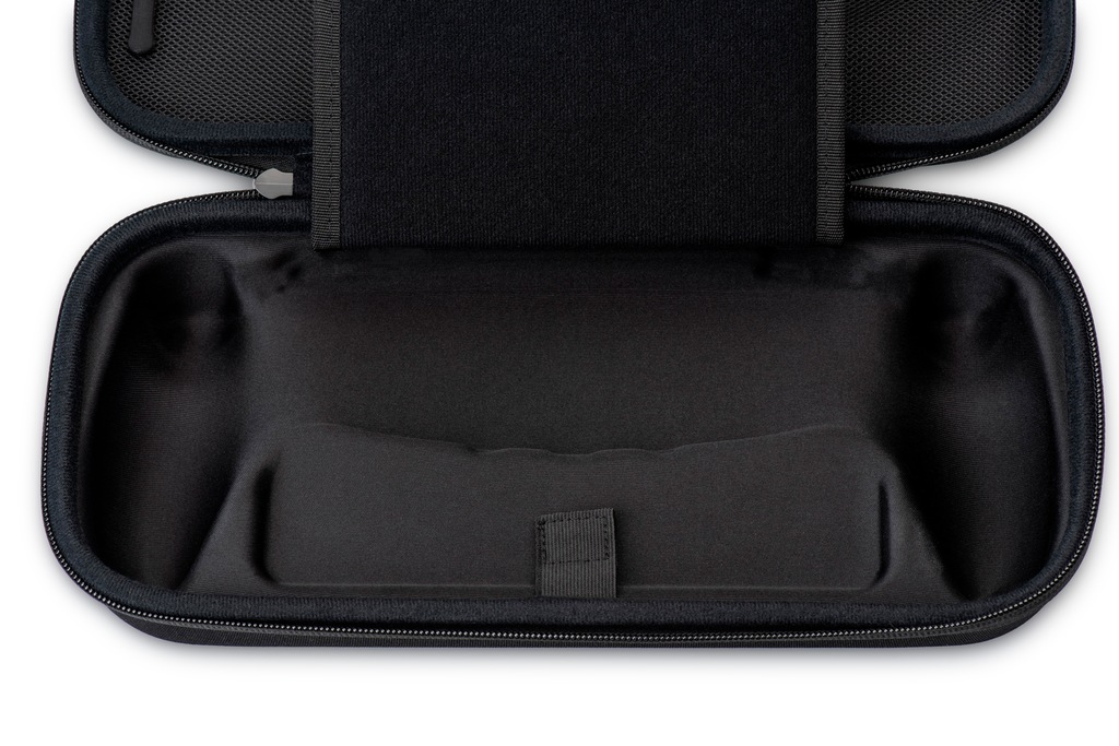 Wnętrze etui zostało starannie zaprojektowane, aby zapewnić nie tylko miejsce na PlayStation Portal, ale także na przykładowo przewód do ładowania. Dodatkowa, wyściełana osłona zabezpiecza ekran, chroniąc go przed zarysowaniami i innymi uszkodzeniami. Dzięki temu możesz bez obaw przechowywać i transportować swoje urządzenie, niezależnie od sytuacji.