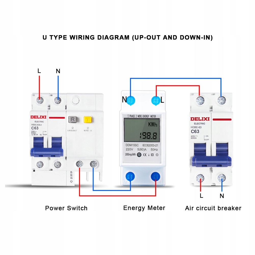 5-80A DDM15SC Cyfrowy wyświetlacz LCD Jednofazowy elektroniczny licznik energii KWh na szynę Din