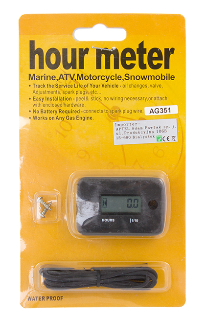 Spisuje się idealnie w motocyklach, kosiarkach, agregatach prądotwórczych i innych maszynach z silnikiem benzynowym. Dzięki temu licznikowi zawsze będziesz wiedział kiedy wymienić świece, olej czy wyregulować zawory.