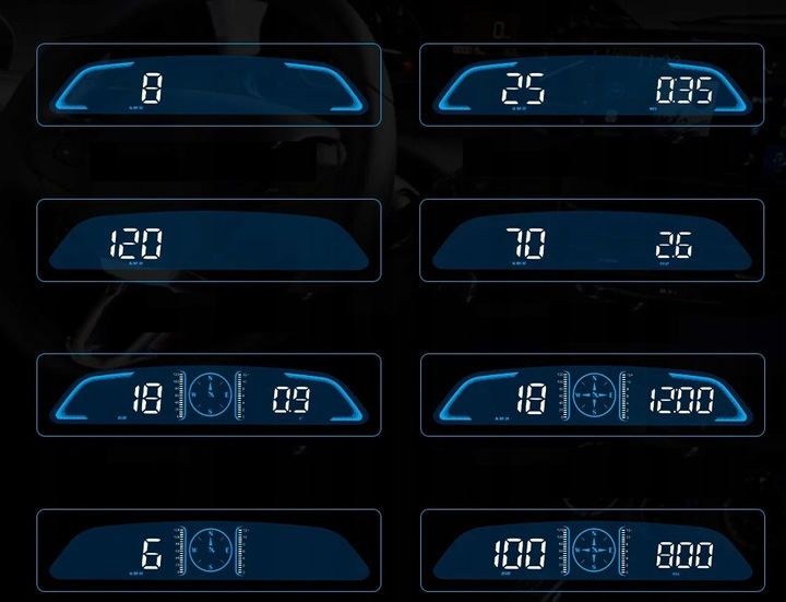 - Funkcja alarmów dotyczących bezpieczeństwa podczas jazdy: Bezpieczeństwo to najważniejsza rzecz podczas jazdy. . Nasz HUD samochodowy posiada dwa ważne ostrzeżenia: alert dotyczący nadmiernej szybkości oraz alert zmęczenia kierowcy. Gdy prędkość przekroczy ustawioną wartość, urządzenie wyemituje sygnał dźwiękowy, aby zredukować prędkość. Po upływie 4 godzin jazdy, aparatura poinformuje o konieczności krótkiej przerwy. Nasza opiekuńcza służba bezpieczeństwa podczas podróży.