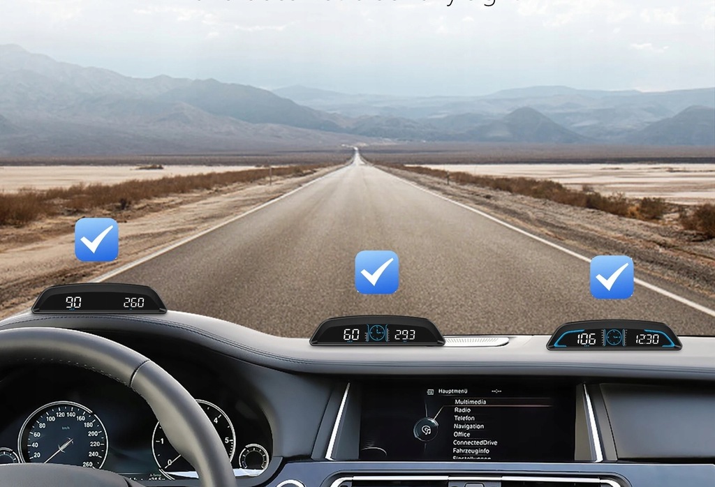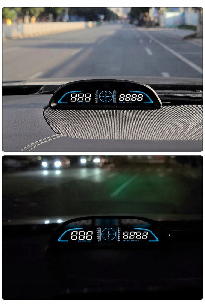 - Funkcja alarmów dotyczących bezpieczeństwa podczas jazdy: Bezpieczeństwo to najważniejsza rzecz podczas jazdy. . Nasz HUD samochodowy posiada dwa ważne ostrzeżenia: alert dotyczący nadmiernej szybkości oraz alert zmęczenia kierowcy. Gdy prędkość przekroczy ustawioną wartość, urządzenie wyemituje sygnał dźwiękowy, aby zredukować prędkość. Po upływie 4 godzin jazdy, aparatura poinformuje o konieczności krótkiej przerwy. Nasza opiekuńcza służba bezpieczeństwa podczas podróży.