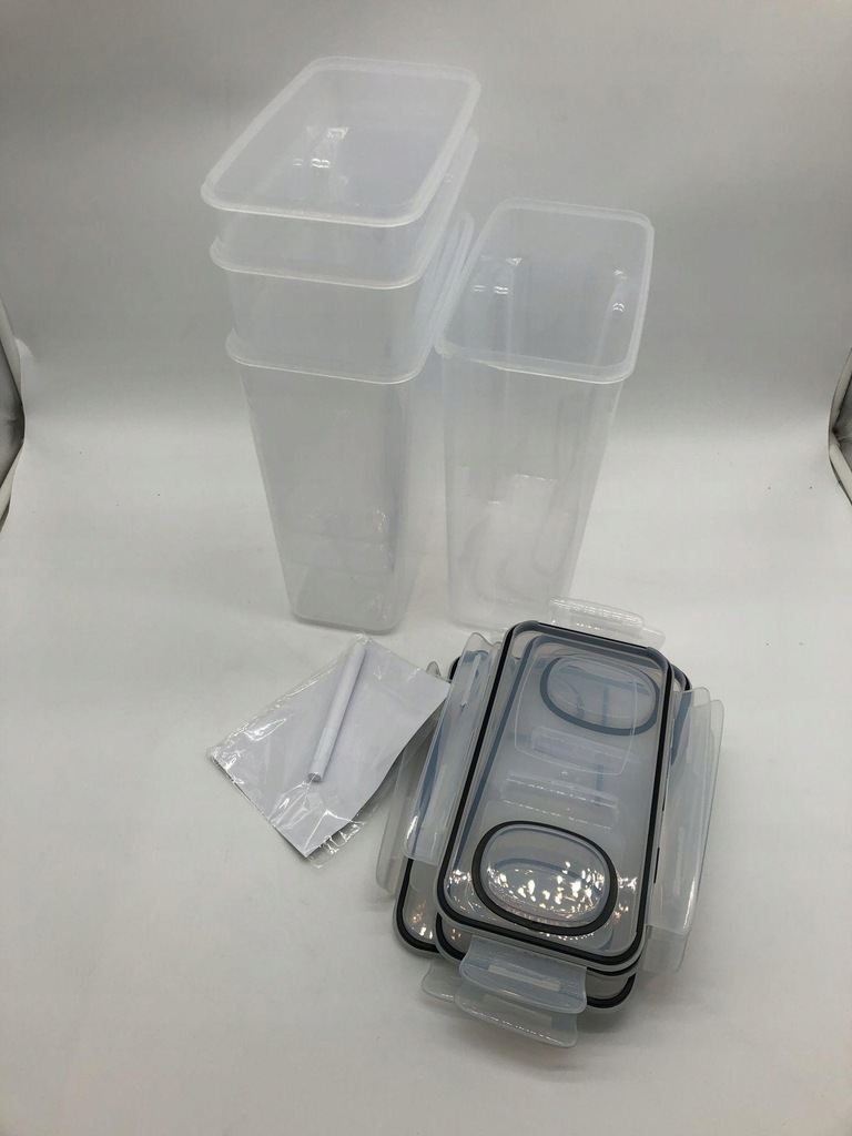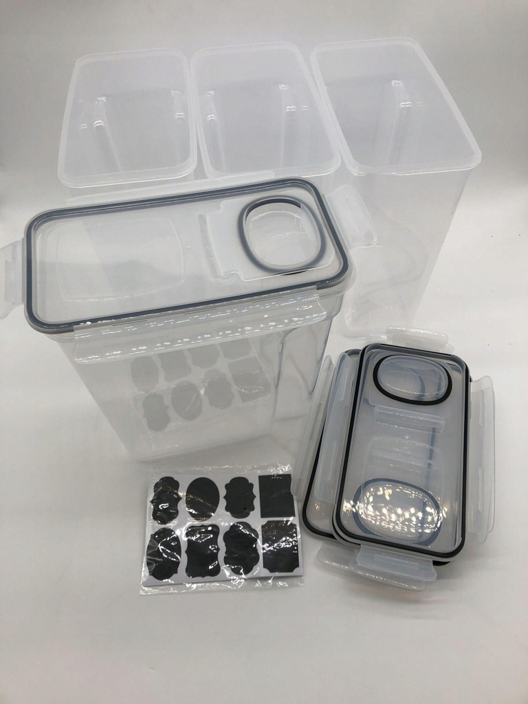 Praktyczny rozmiar i wszechstronność: ten zestaw składa się z czterech hermetycznych pojemników na żywność o pojemności 5,5 l (wysokość 27,5 cm), które nadają się do przechowywania żywności, takiej jak płatki zbożowe, płatki owsiane, zboża, makarony, mąka i przekąski. Możesz kreatywnie wykorzystać pojemniki do przechowywania żywności, aby uporządkować swoją spiżarnię lub szafkę.
