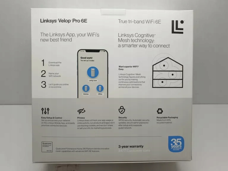- nazwa przedmiotu: Linksys Velop Pro 6E System Mesh WiFi 6E True Tri-Band