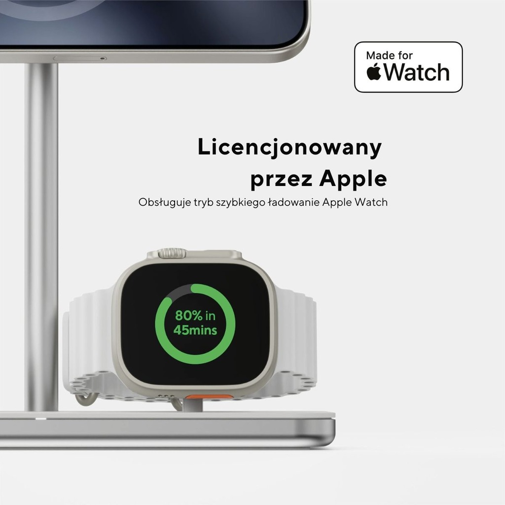 Dzięki zastosowaniu doskonałej jakości materiałów, solidnie stoi na każdej powierzchni i ładuje urządzenia Apple szybko, łatwo i bezpiecznie!