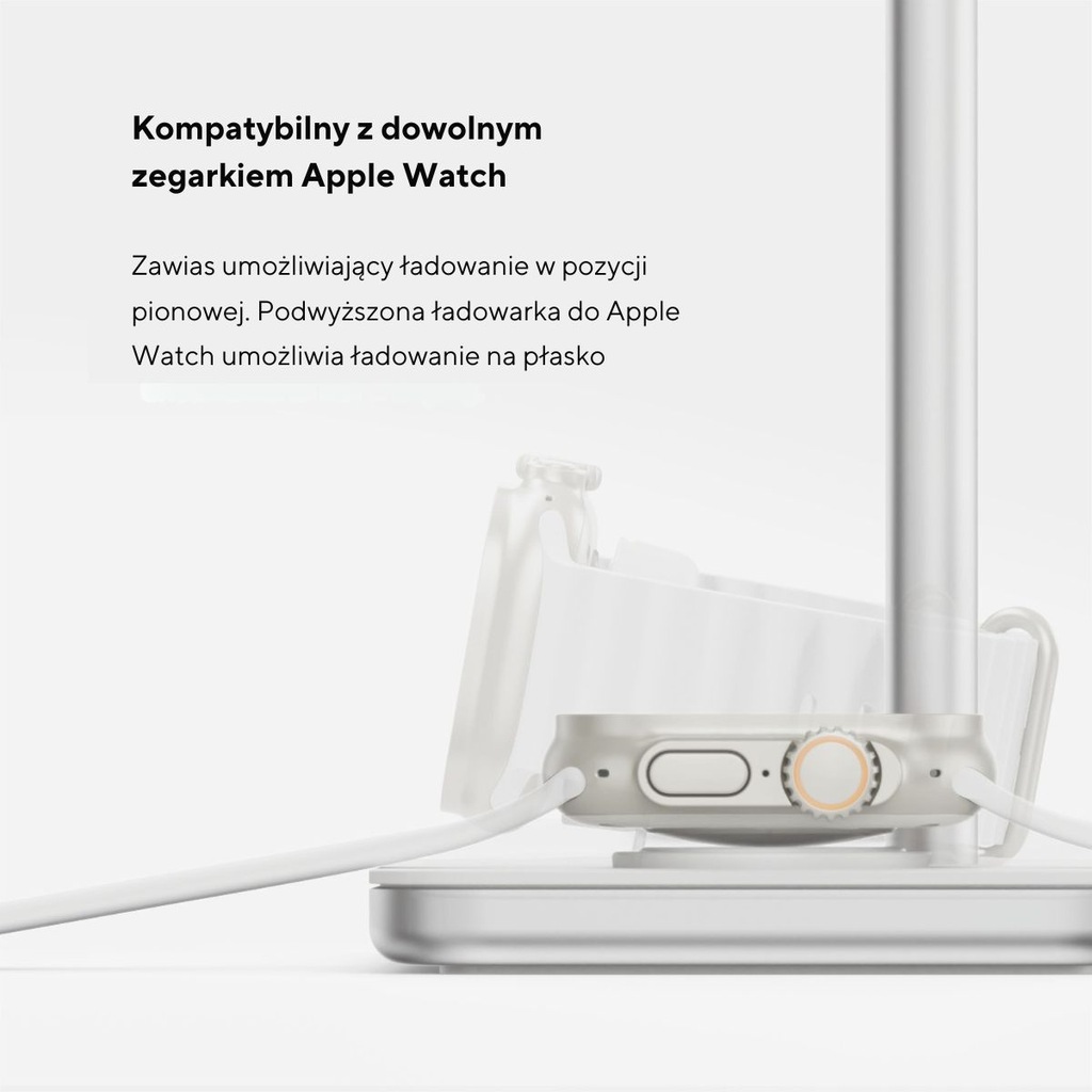 Stacja ładująca LINQ 3w1 umożliwia jednoczesne ładowanie wszystkich ulubionych urządzeń Apple: iPhone'a, słuchawek AirPods i zegarka Apple Watch!