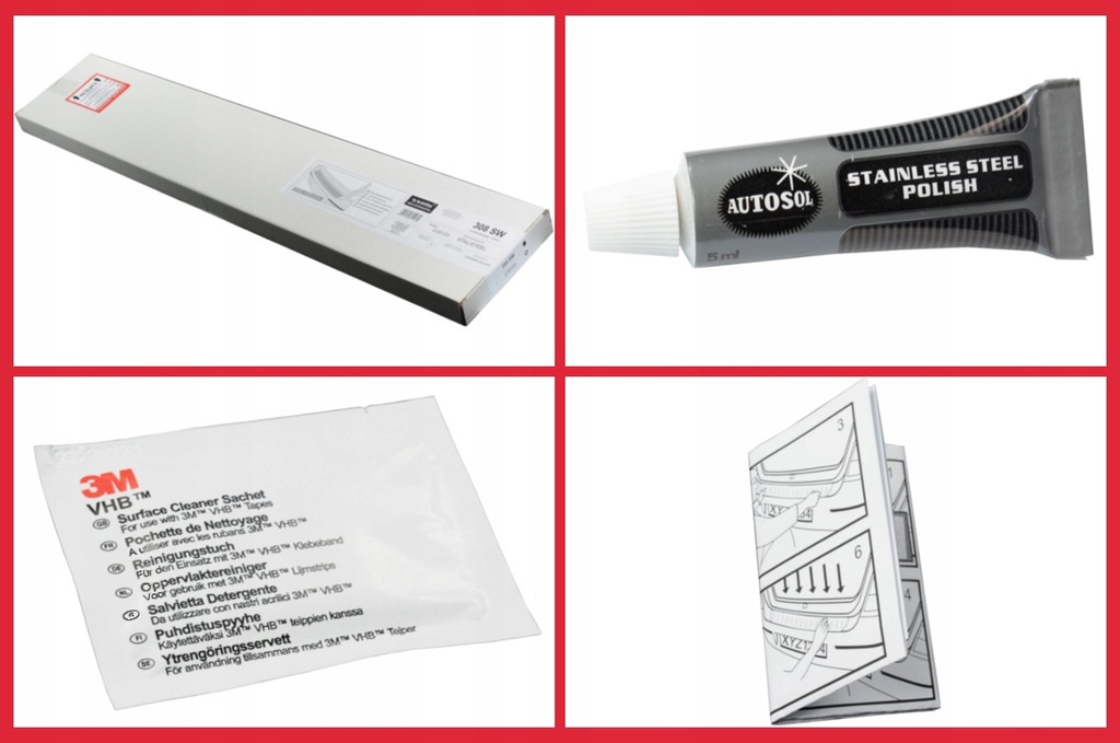 Również dołączamy tubkę preparatu Autosol (5ml) - do polerowania i renowacji stali nierdzewnej. Preparat zapewnia powierzchni listwy trwały połysk bez zarysowań oraz stwarza warstwę ochronną.