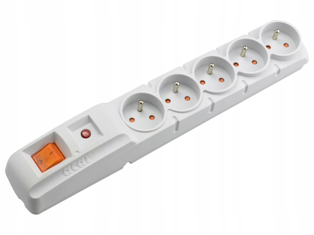 Acar F5 to zabezpieczenie przeciwprzepięciowe pięciu urządzeń. Podświetlany wyłącznik, wygodny automatyczny bezpiecznik, cztery możliwe kierunki ułożenia sznura sieciowego, estetyczne wzornictwo, konstrukcja z wysokiej jakości niepalnego tworzywa, szybkie warystory, a także 10 letnia gwarancja oraz niska cena gwarantują najbardziej trafny wybór do biura i domu.
