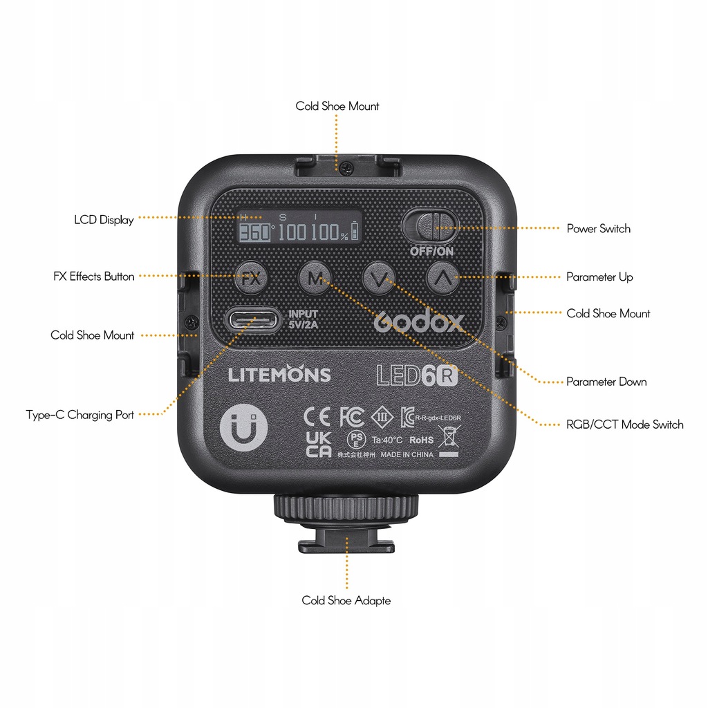 - LITEMONS LED6R RGB LED Lampa wideo Akumulatorowe