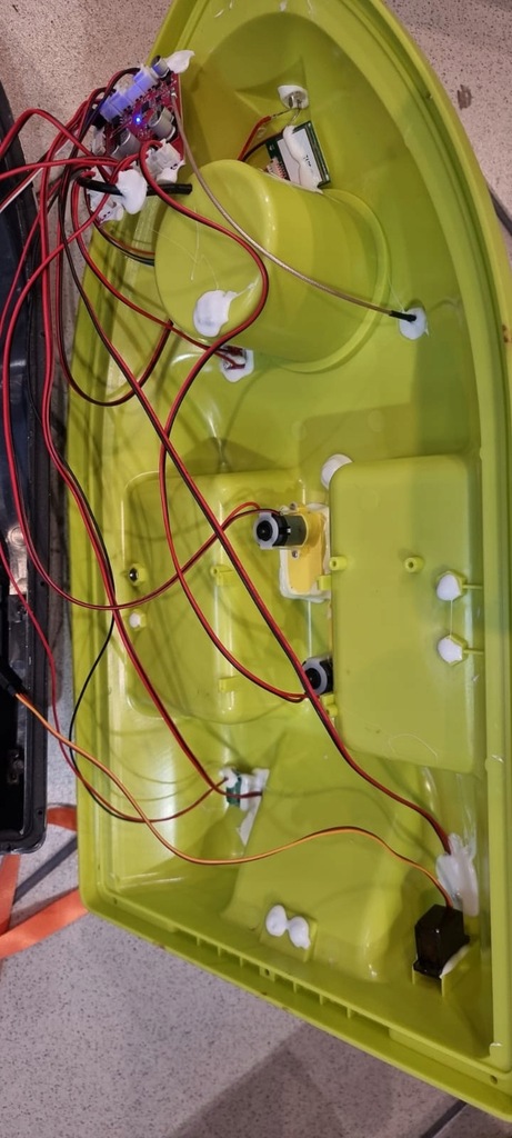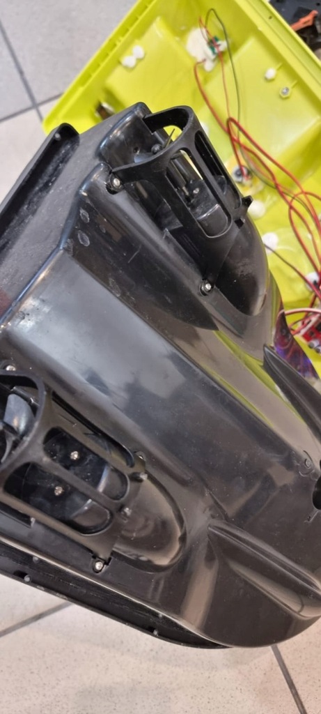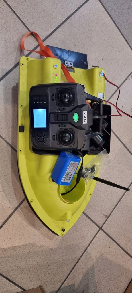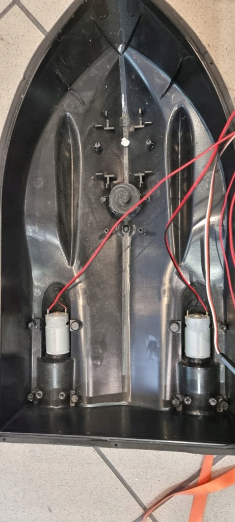 Łódka jest rozkręcona ale kompleta elektronicznie, śrubek od obudowy nie ma, zwykłe wkręty, Jeśli ktoś ma trochę pojęcia, na pewno do uratowania