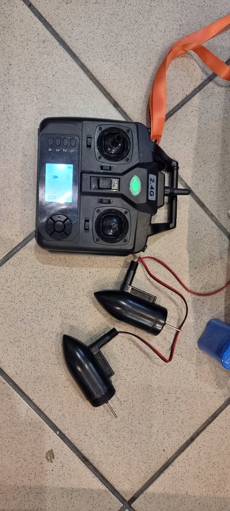 Łódka używana, zwrot od klienta, włącza się nadajnik działa, można otworzyć pojemniki zanętowe, włączanie, wyłączanie świateł, nie działają silniki. W zestawie silniki w łodzi, plus dwa dodatkowo nowe. Brak klapki od baterii, w zestawie jest jeszcze torba transportowa, akumulator 12000mAh.