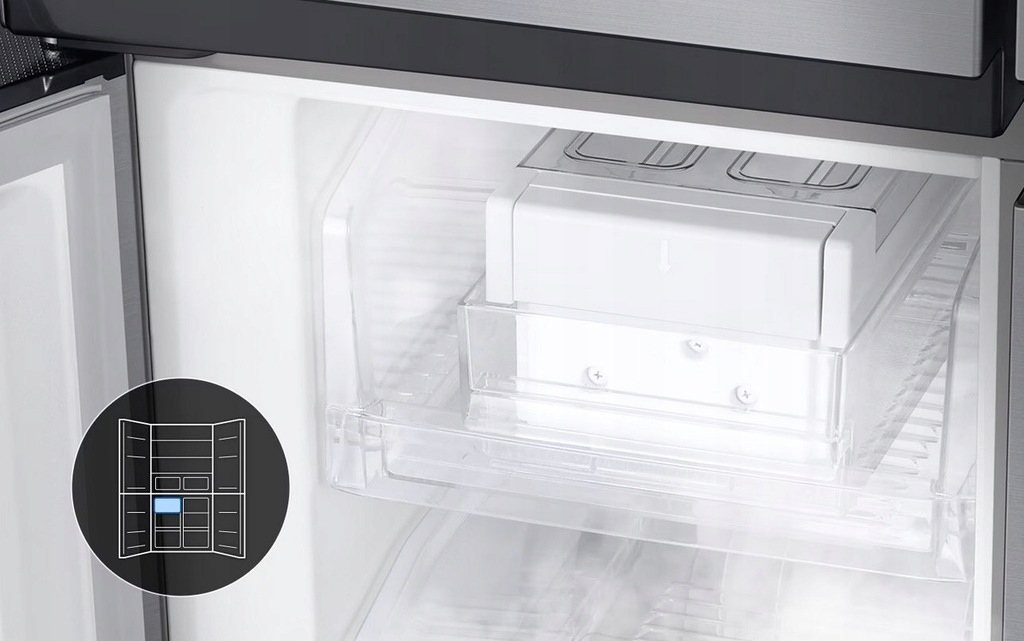 Technologia pełnego No Frost marki Samsung zapewnia stały obieg chłodnego powietrza, systematycznie usuwając nadmiar wilgoci z wnętrza lodówki. Dzięki temu lód i szron nie osadzają się na ściankach czy produktach. Żywność zachowuje świeżość i wartości odżywcze na dłużej, a utrzymanie czystości jest łatwiejsze – bez rozmrażania.