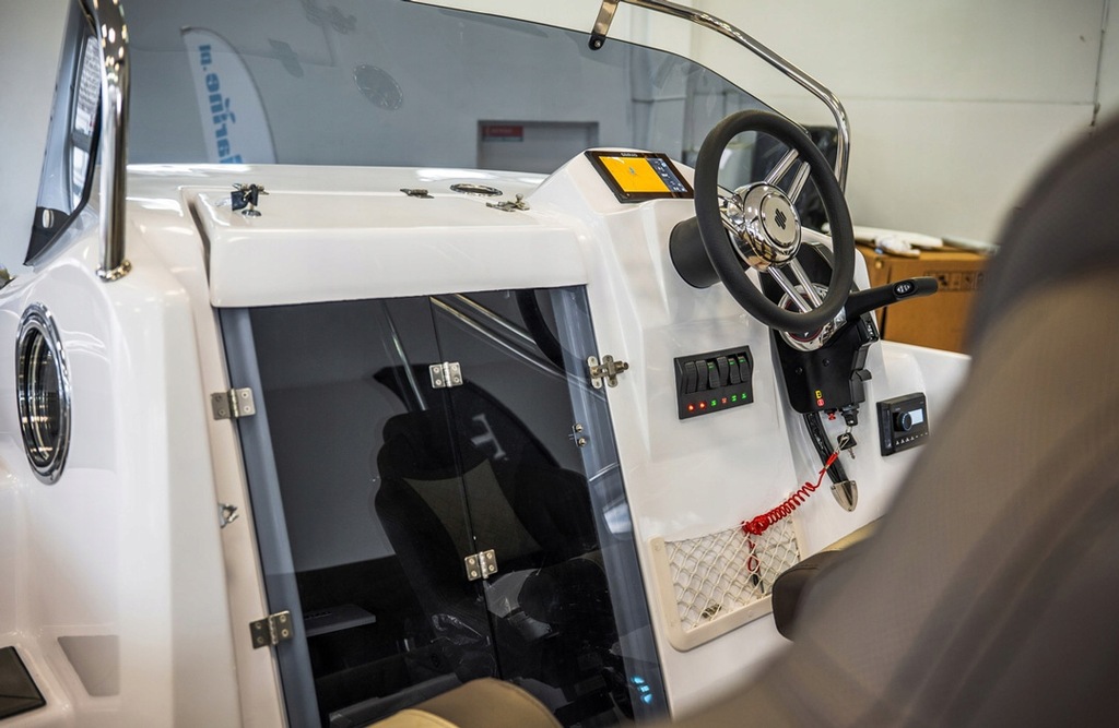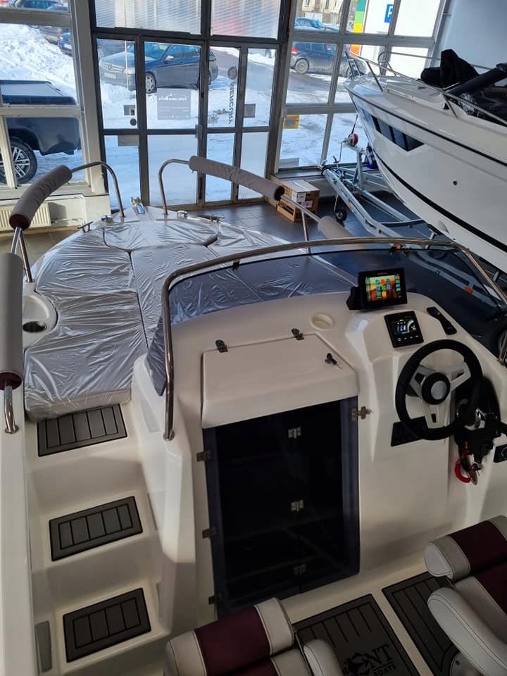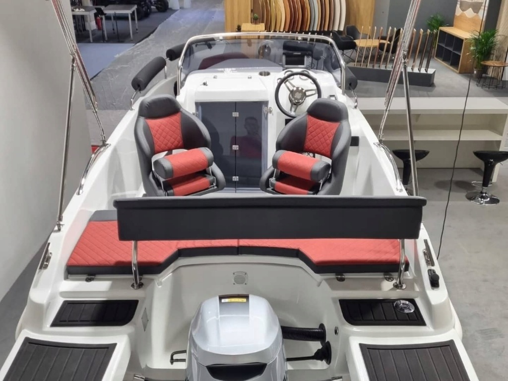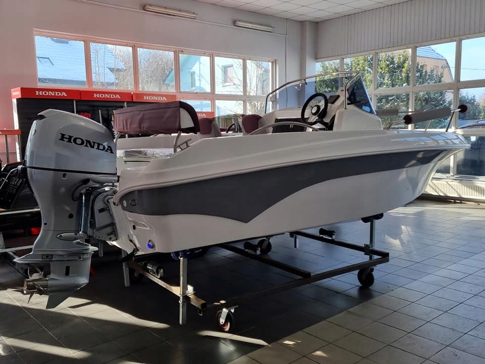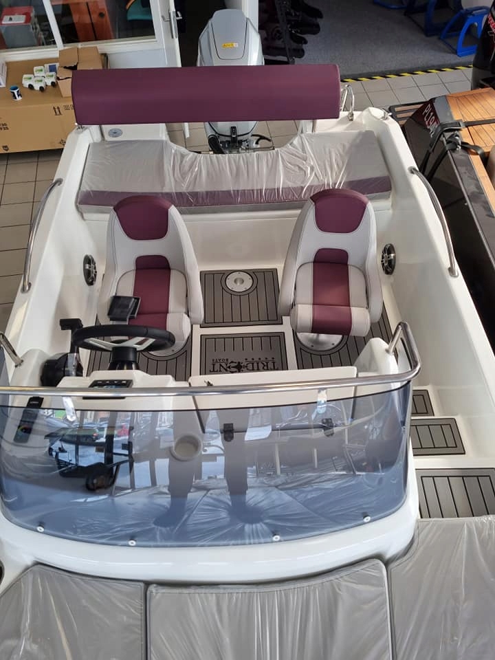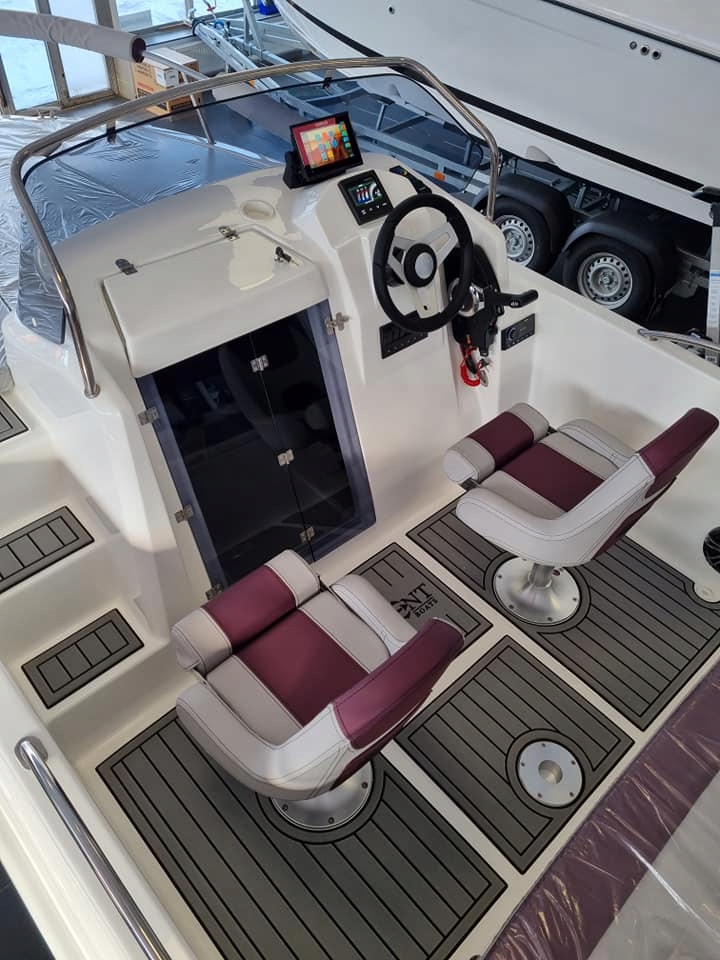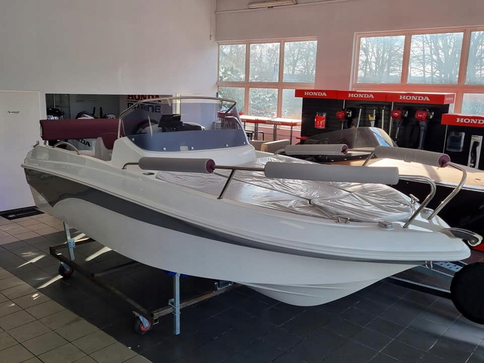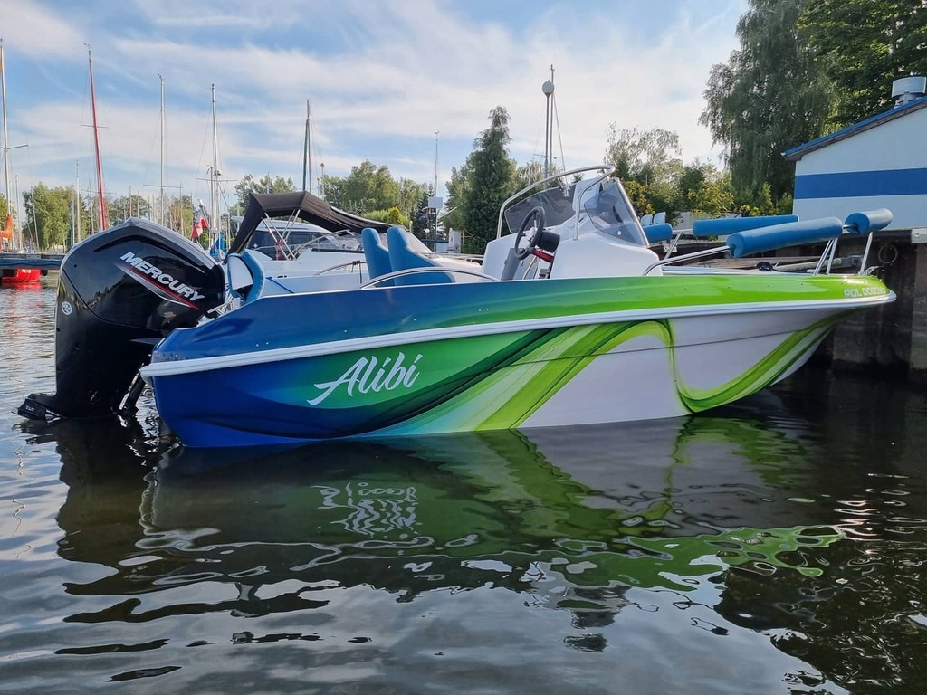 Jednostka o długości 5,30 m i szerokości 2,07 m z doskonałymi właściwościami nautycznymi. Dzięki konstrukcji kadłuba zachowuje zwrotność oraz łatwo wchodzi w ślizg. Z przodu łodzi znajduje się spory pokład słoneczny z bakistą kotwiczną na dziobie, dodatkowo po obu stronach pokładu umieszczone są gniazda na napoje. Na burtach dla bezpieczeństwa montowane są wytrzymałe relingi dziobowe ze stali nierdzewnej. Pod pokładem słonecznym znajduje się kabina o długości 1,95 m i szerokości do 1,7 m, kabina spełnia funkcję sypialną w której zmieszczą się dwie dorosłe osoby oraz dzieci. W kabinie mieści się przenośna toaleta. W tylnej części łodzi znajduje się pokład ze sterówką fotelami regulowanymi oraz składanym stolikiem. Na rufie znajduje się obszerna trójkomorowa bakista z łatwym dostępem do zbiornika paliwa, miejscem na akumulator. Wyjmowane tylne oparcie umożliwia podnoszenie silnika zaburtowego. Załączone zdjęcia są zdjęciami poglądowymi. Zapraszamy do kontaktu mailowego.
