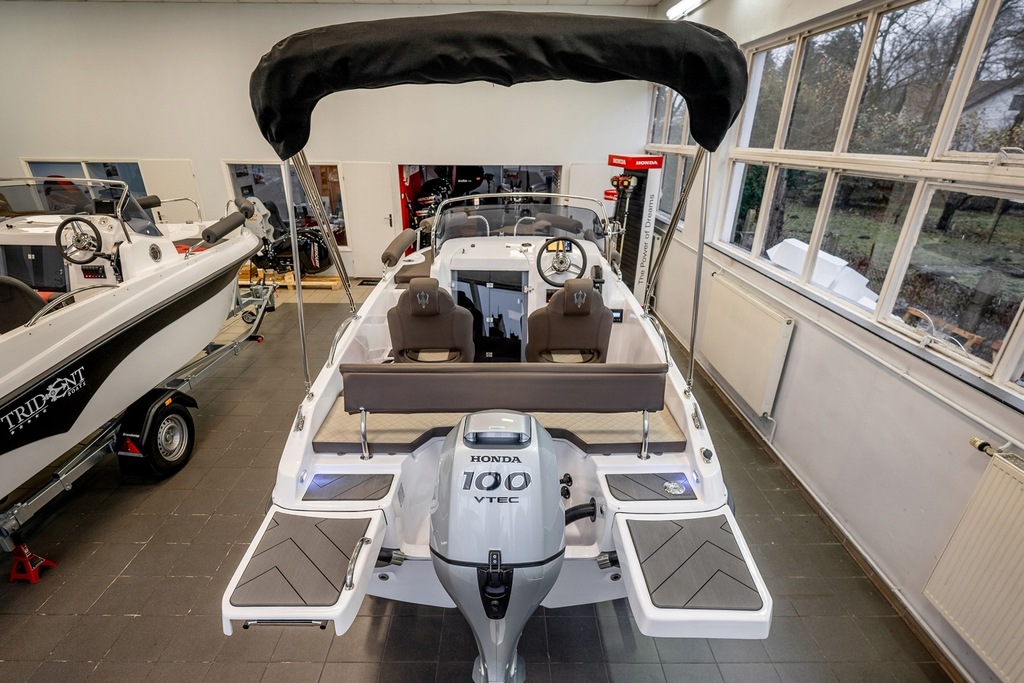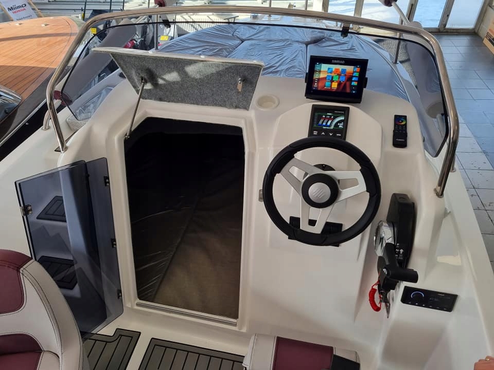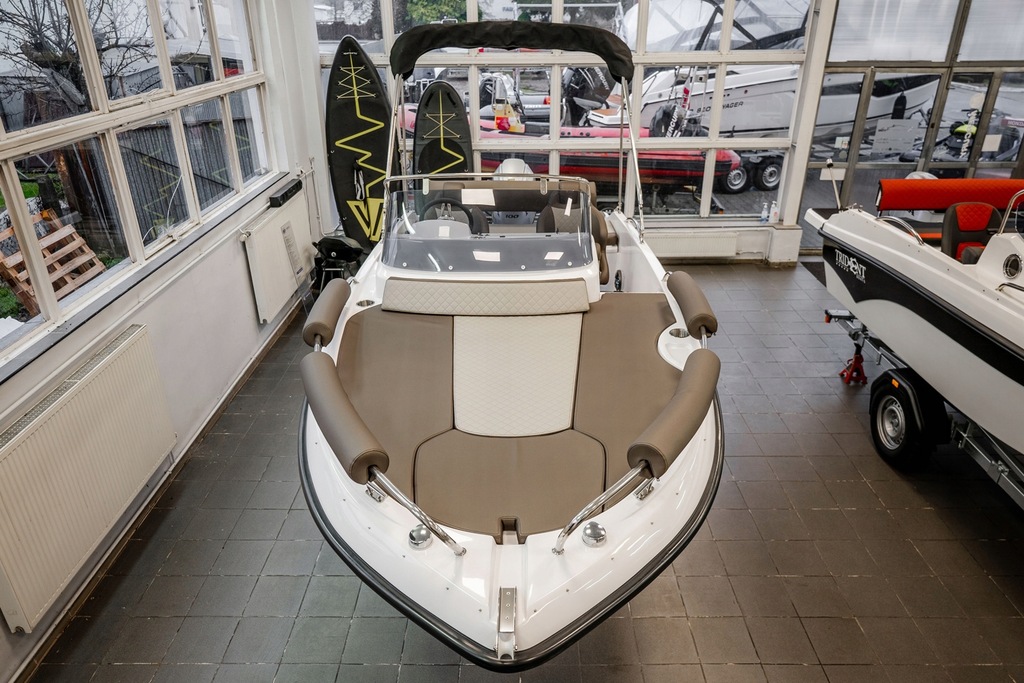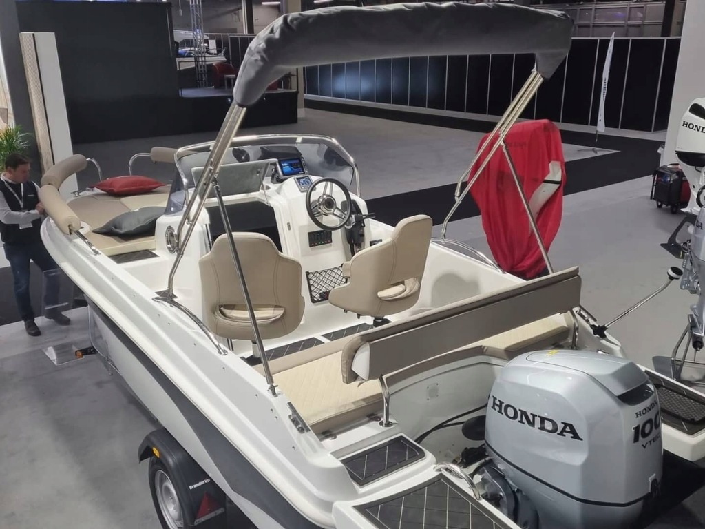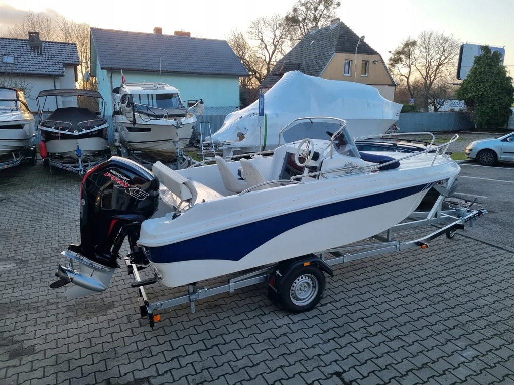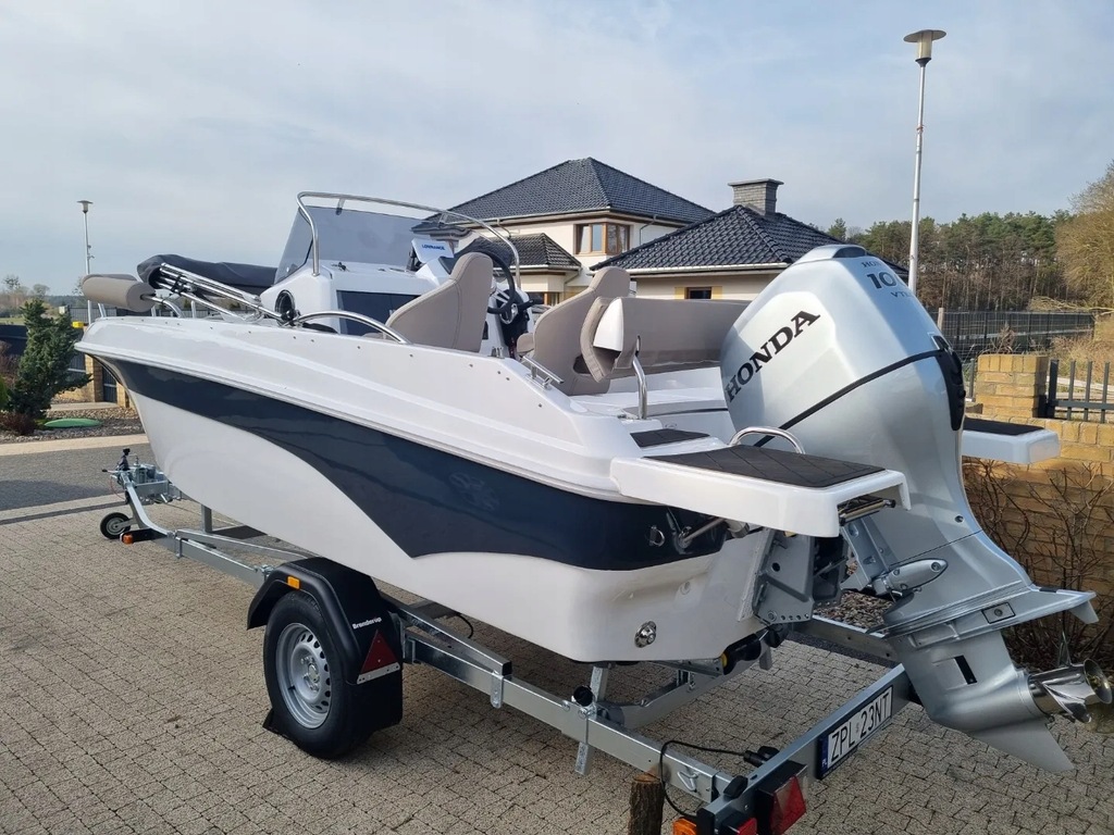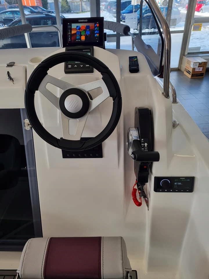 Jednostka o długości 5,30 m i szerokości 2,07 m z doskonałymi właściwościami nautycznymi. Dzięki konstrukcji kadłuba zachowuje zwrotność oraz łatwo wchodzi w ślizg. Z przodu łodzi znajduje się spory pokład słoneczny z bakistą kotwiczną na dziobie, dodatkowo po obu stronach pokładu umieszczone są gniazda na napoje. Na burtach dla bezpieczeństwa montowane są wytrzymałe relingi dziobowe ze stali nierdzewnej. Pod pokładem słonecznym znajduje się kabina o długości 1,95 m i szerokości do 1,7 m, kabina spełnia funkcję sypialną w której zmieszczą się dwie dorosłe osoby oraz dzieci. W kabinie mieści się przenośna toaleta. W tylnej części łodzi znajduje się pokład ze sterówką fotelami regulowanymi oraz składanym stolikiem. Na rufie znajduje się obszerna trójkomorowa bakista z łatwym dostępem do zbiornika paliwa, miejscem na akumulator. Wyjmowane tylne oparcie umożliwia podnoszenie silnika zaburtowego. Załączone zdjęcia są zdjęciami poglądowymi. Zapraszamy do kontaktu mailowego.