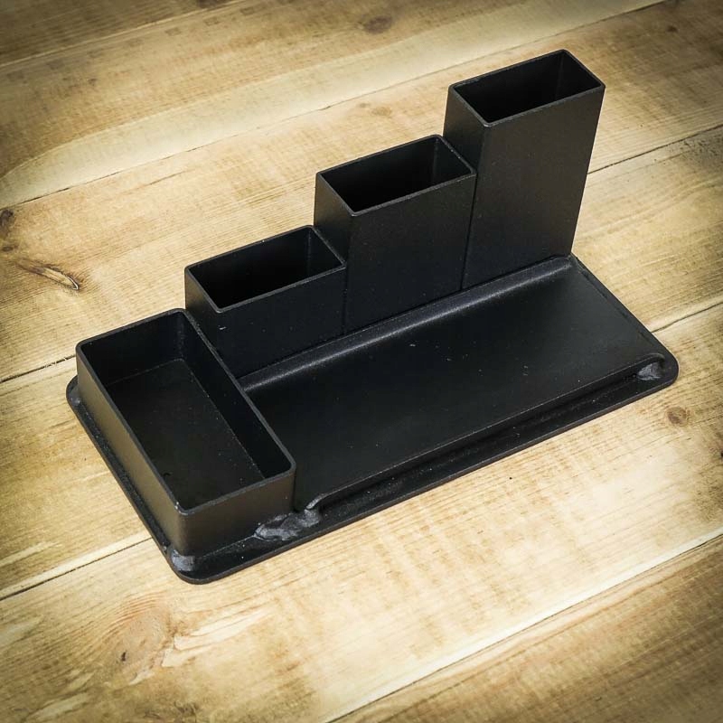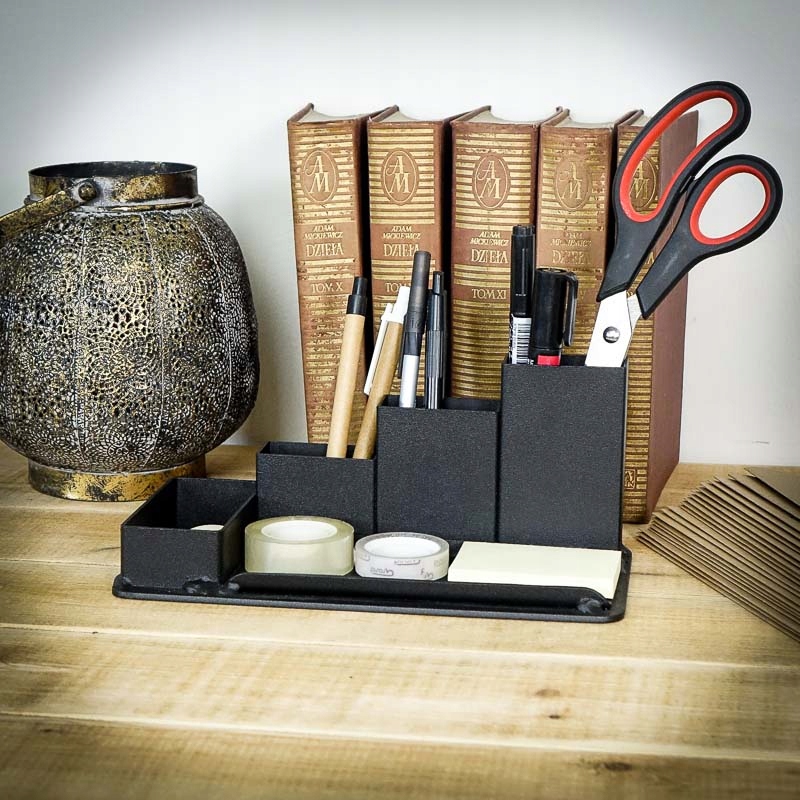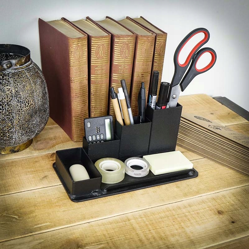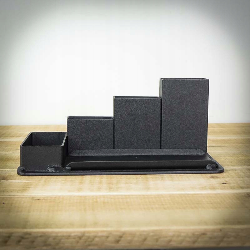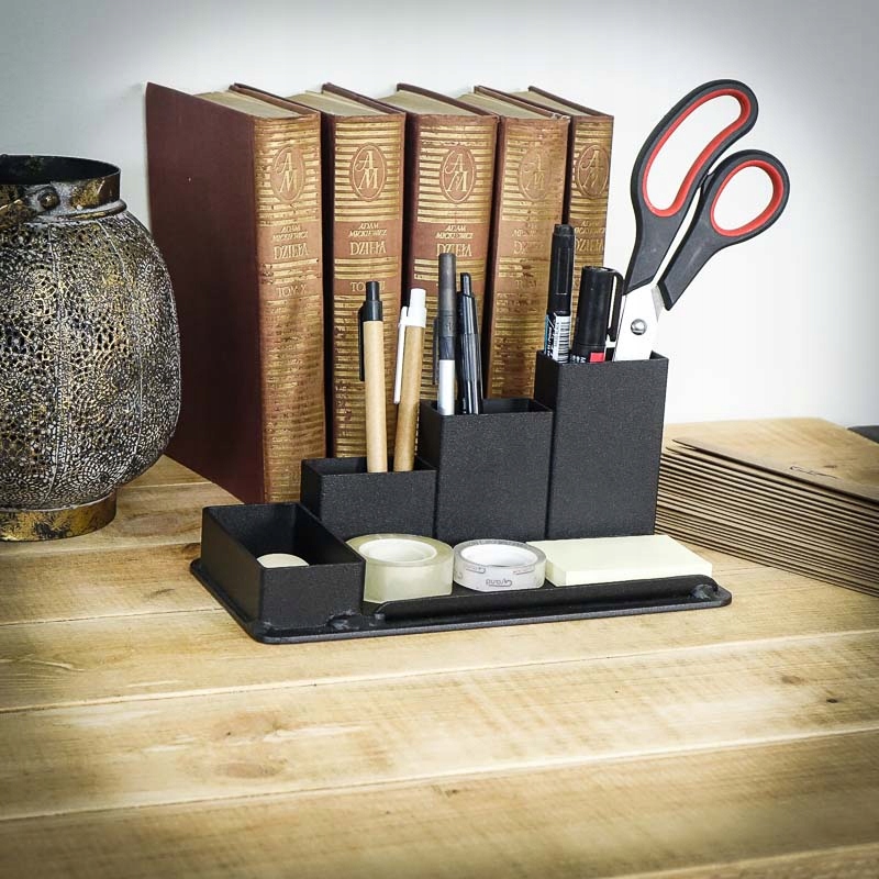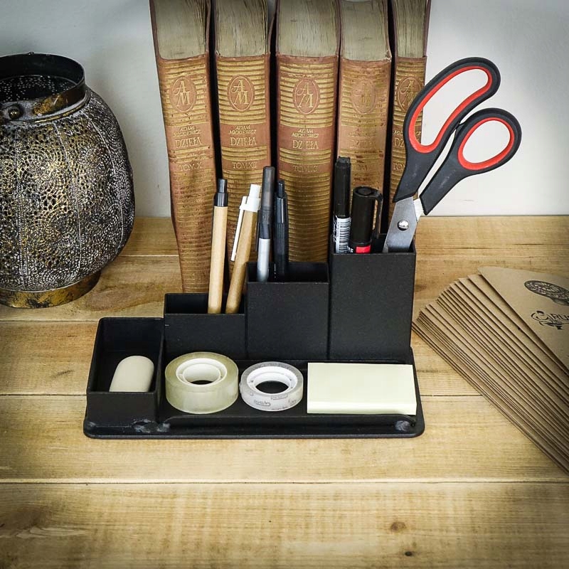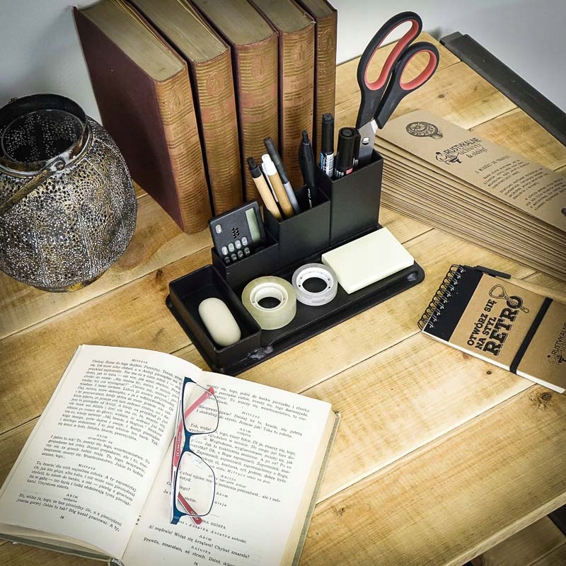 Industarialny organizer na biurko na długopisy.