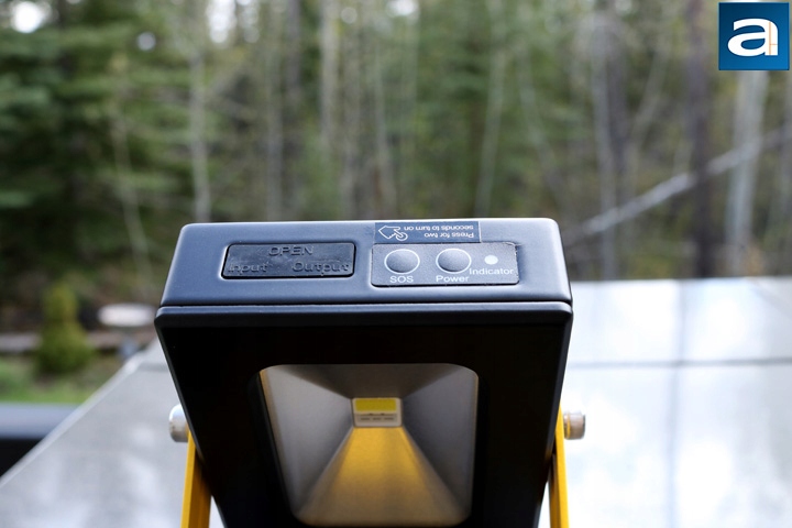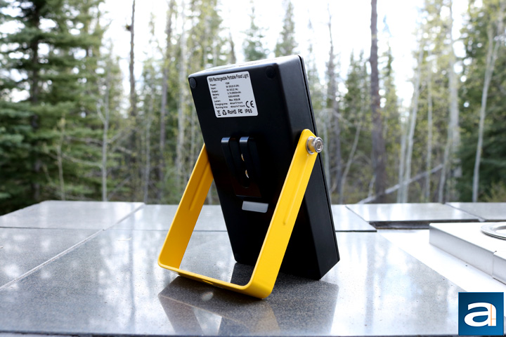 Główna obudowa wydaje mi się być wykonana z odlewanego aluminium z naprawdę grubym, matowym czarnym wykończeniem malowanym proszkowo. Jest tam uformowany stalowy stojak, który ułatwia regulację kąta światła. Ma również otwór przelotowy na podstawie, gdybyś chciał przykręcić go do powierzchni. Wraz ze stojakiem jest sprężynowy stalowy klips do paska przynitowany do tyłu reflektora przeciwpowodziowego.