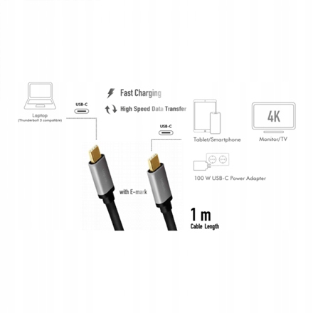 Producer product family - USB 3.2 Gen 2 cable, C/M to C/M, 4K/60Hz, PD,alu