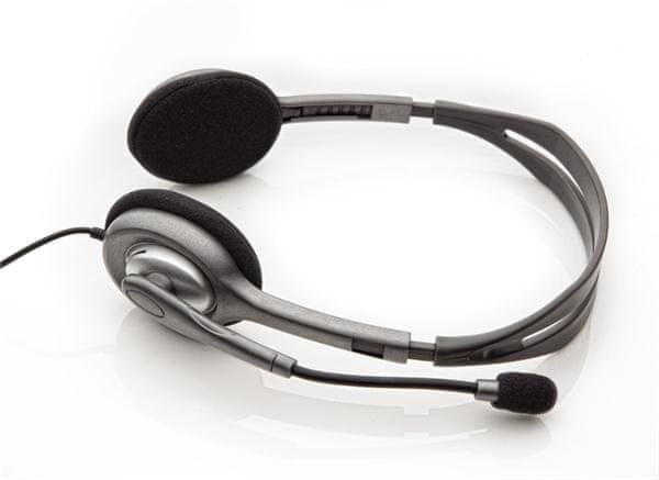 Logitech H110 Słuchawki stereo Wszechstronny zestaw słuchawkowy z mikrofonem redukującym szumy oraz pełnym dźwiękiem stereo ułatwia rozmawianie ze znajomymi w trybie online.
