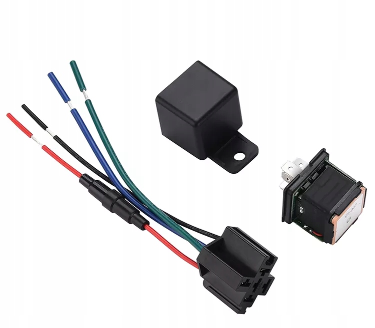 - Podłącz plus i minus do akumulatora (nie trzeba podłączać przewodów zielonego i niebieskiego odcięcia zapłonu, aby lokalizator działał)