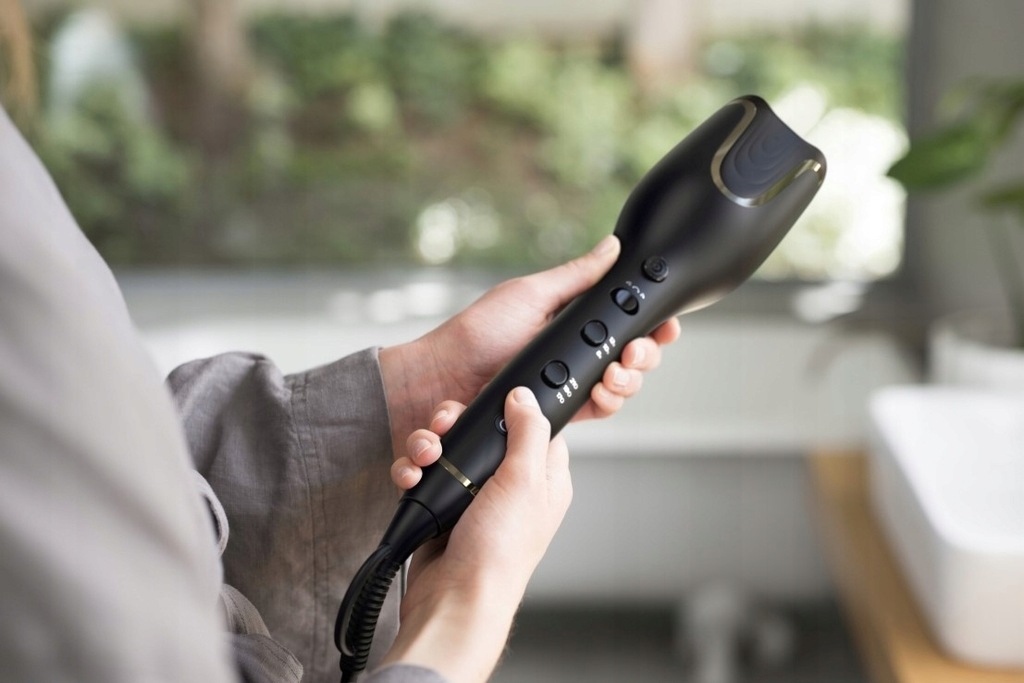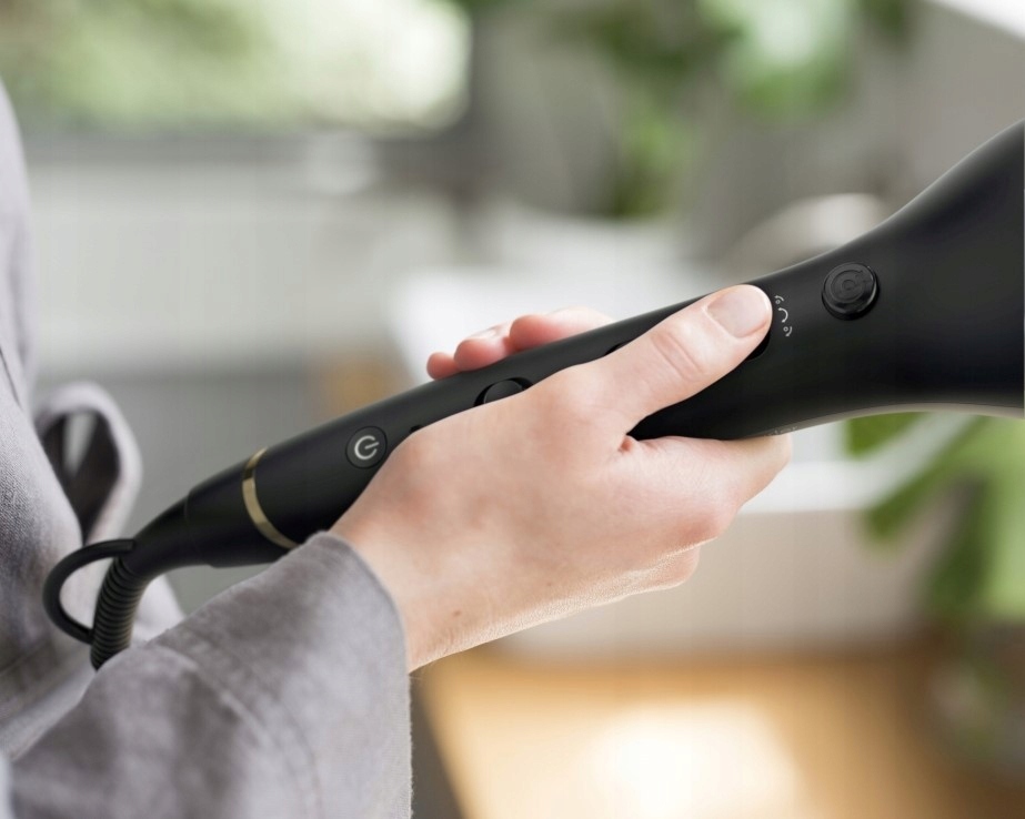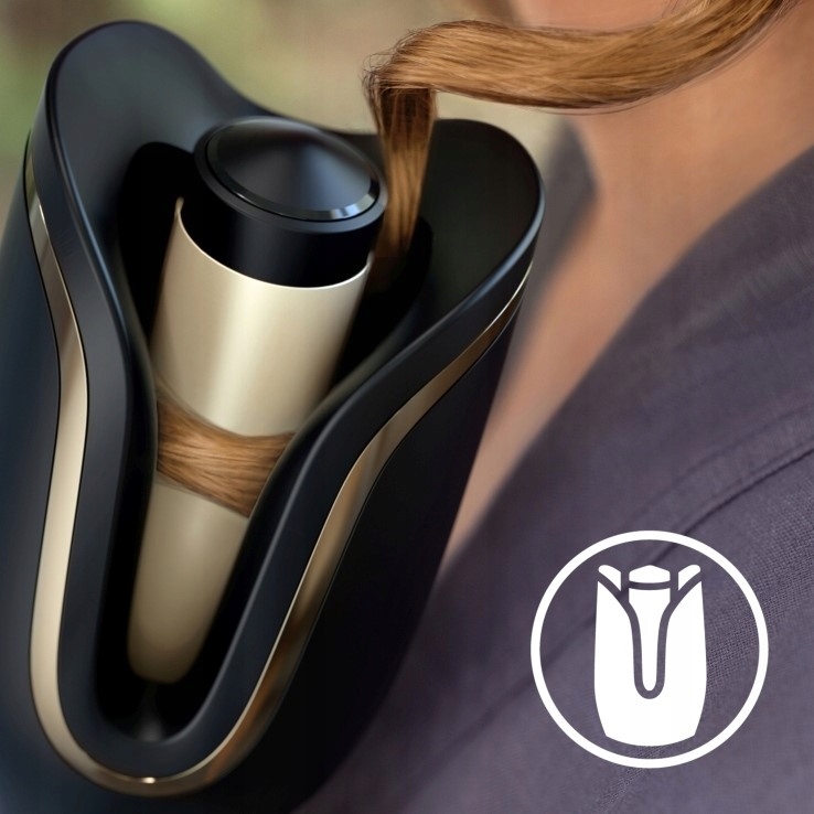 Dzięki pionowej konstrukcji lokówki bardzo wygodnie trzyma się ją w dłoni. Klamry przytrzymujące loki ustawione są pionowo, co sprawia, że dopasowują się do naturalnego ułożenia włosów, a ryzyko zaplątania włosów jest mniejsze. Intuicyjny dostęp do przycisków umieszczonych na uchwycie zapewnia łatwość obsługi. Wyprofilowany, kobiecy kształt komory kręcenia sprawia, że można wygodnie nakręcać loki jeszcze bliżej skóry głowy.